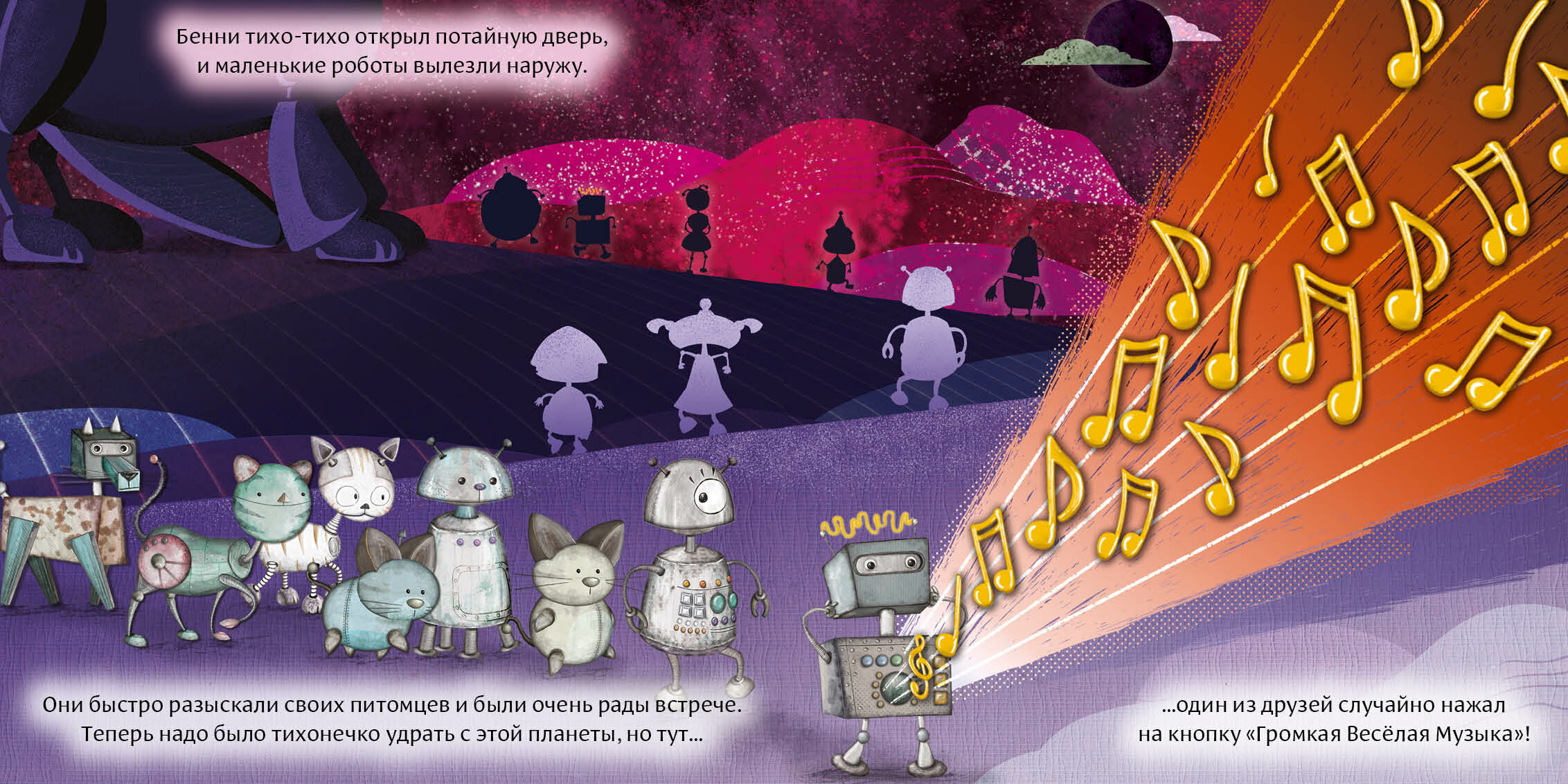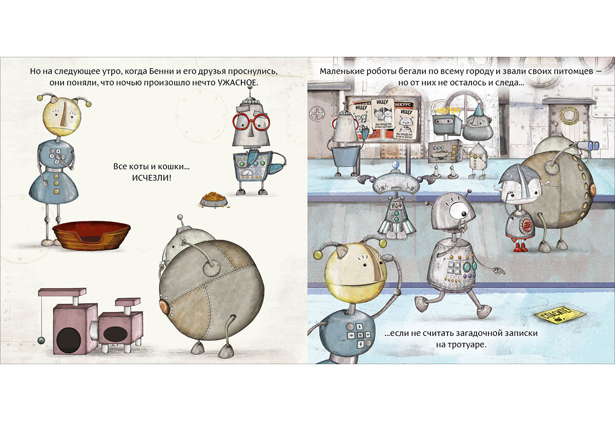 Однажды утром бесследно исчезают все коты и кошки. Как же спасти своих любимых питомцев? И для чего друзьям-роботам понадобится Самая Большая Железная Кошка? И получится ли у Бенни наконец нажать на свою красную кнопку?..