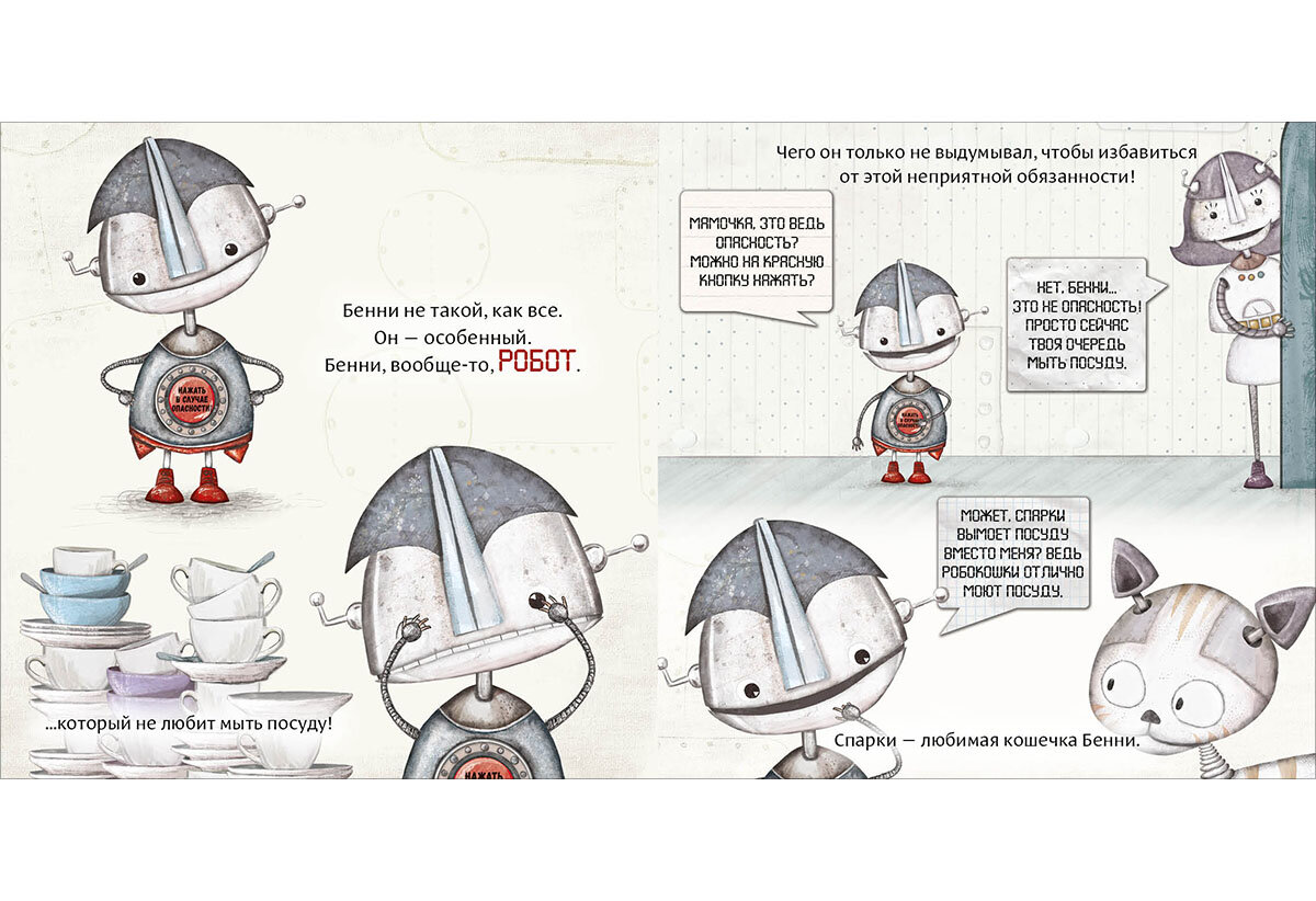 Два года назад купила дочери первую книжку, поэтому вторую заказала сразу, как увидела в продаже, хотя вроде и не по возрасту уже. Вторая сказка такая же добрая и наполненная смысла, как и первая. Персонажи очень симпатичные и автор, конечно, знал о всеобщей любви к котикам. Подчеркну, что эти книги действительно для всех, дурацкий стереотип о том, что роботы только для мальчиков должен уже исчезнуть.