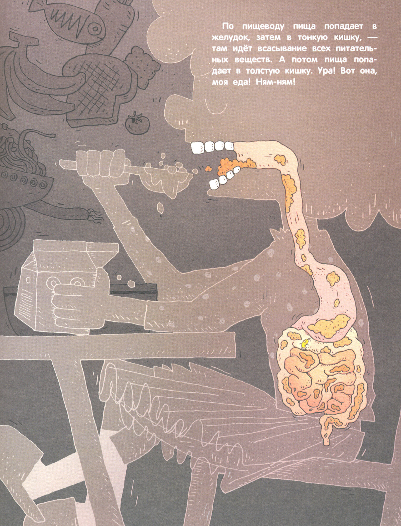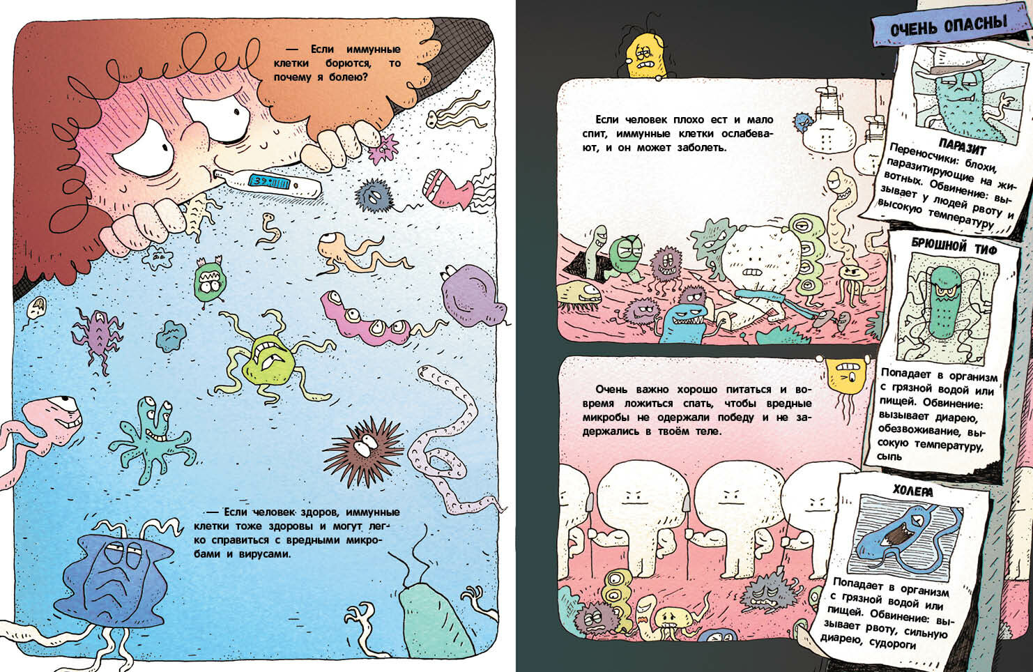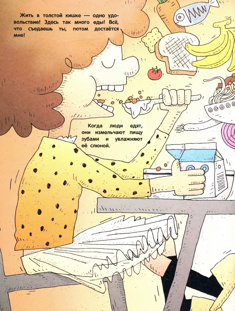 Мы поселились во всех уголках твоего тела - от пальцев ног до головы. Нет-нет, не торопись говорить "Фу!", мы не такие плохие, как может показаться на первый взгляд. Мы перерабатываем пищу, которую ты ешь, превращаем её в полезные вещества и равномерно распределяем по клеткам твоего тела. А ещё многие из нас защищают тебя от болезней. Видишь, какие мы полезные?