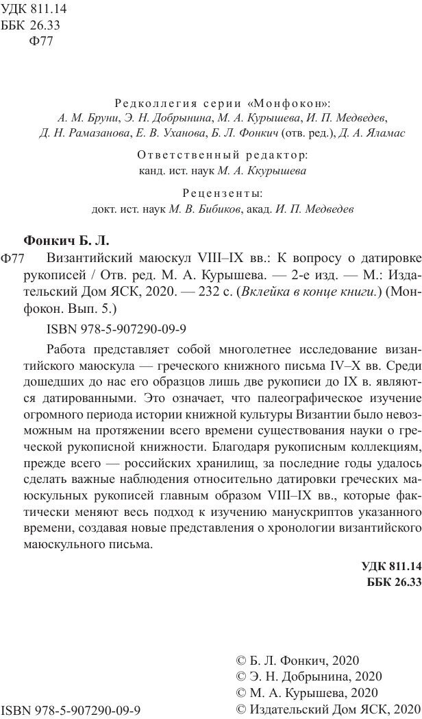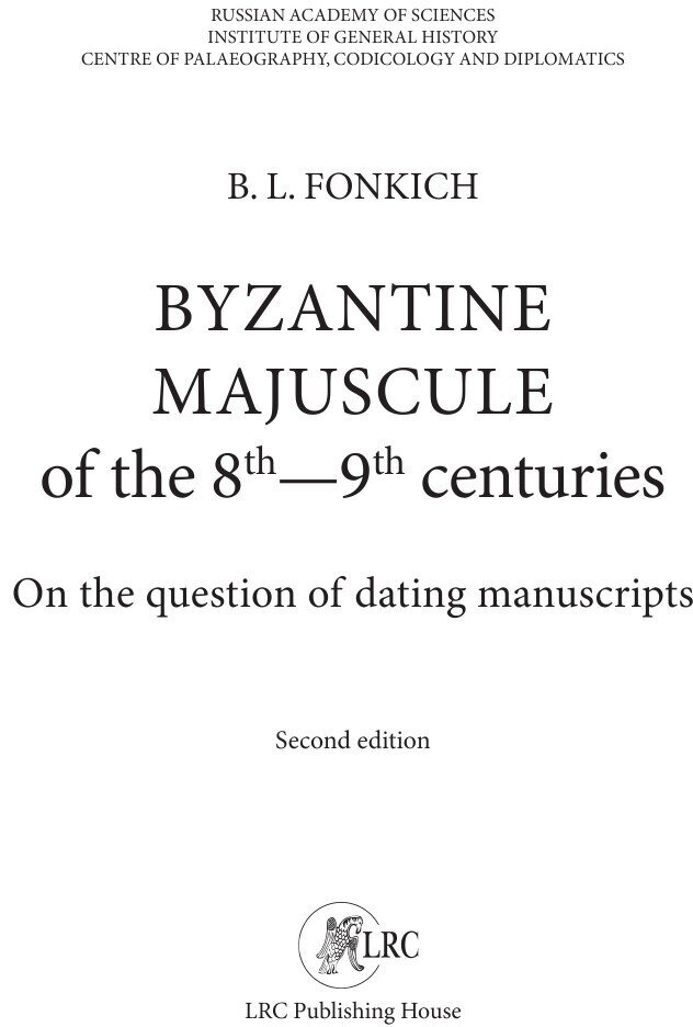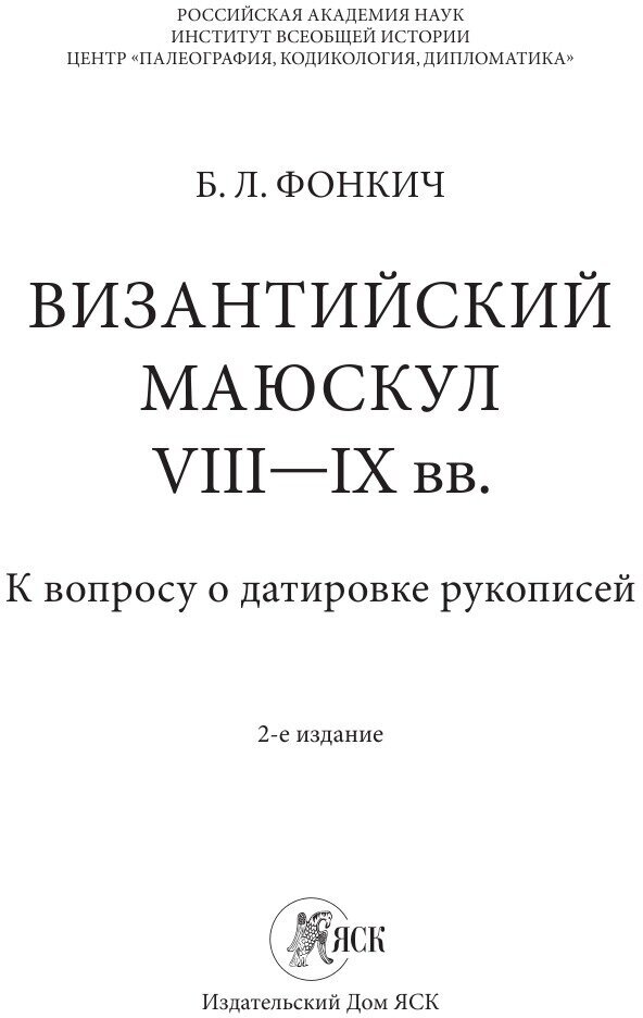 Византийский маюскул VIII-IX вв. К вопросу о датировке рукописей (Б. Л. Фонкич); Языки Славянской Культуры, 2020