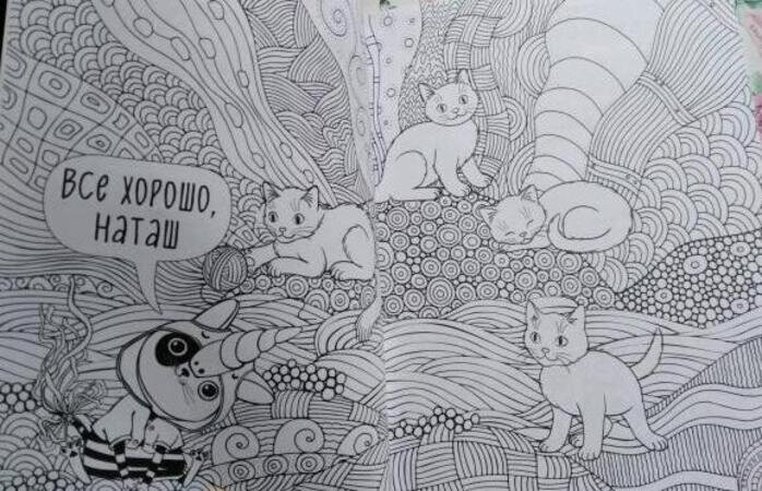 Отличная раскраска. Действительно антистресс. Покупала в подарок именно Наташе, которая переживает тяжёлый кризис в личных отношениях. Прикольные котики, забавные ситуации, весёлые фразы - всё вместе очень помогает взглянуть на жизненную ситуацию под другим углом. По крайней мере, моей Наташе помогает. Так что, рекомендую всем.