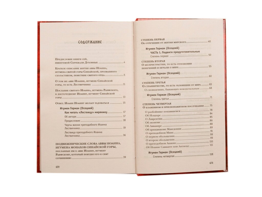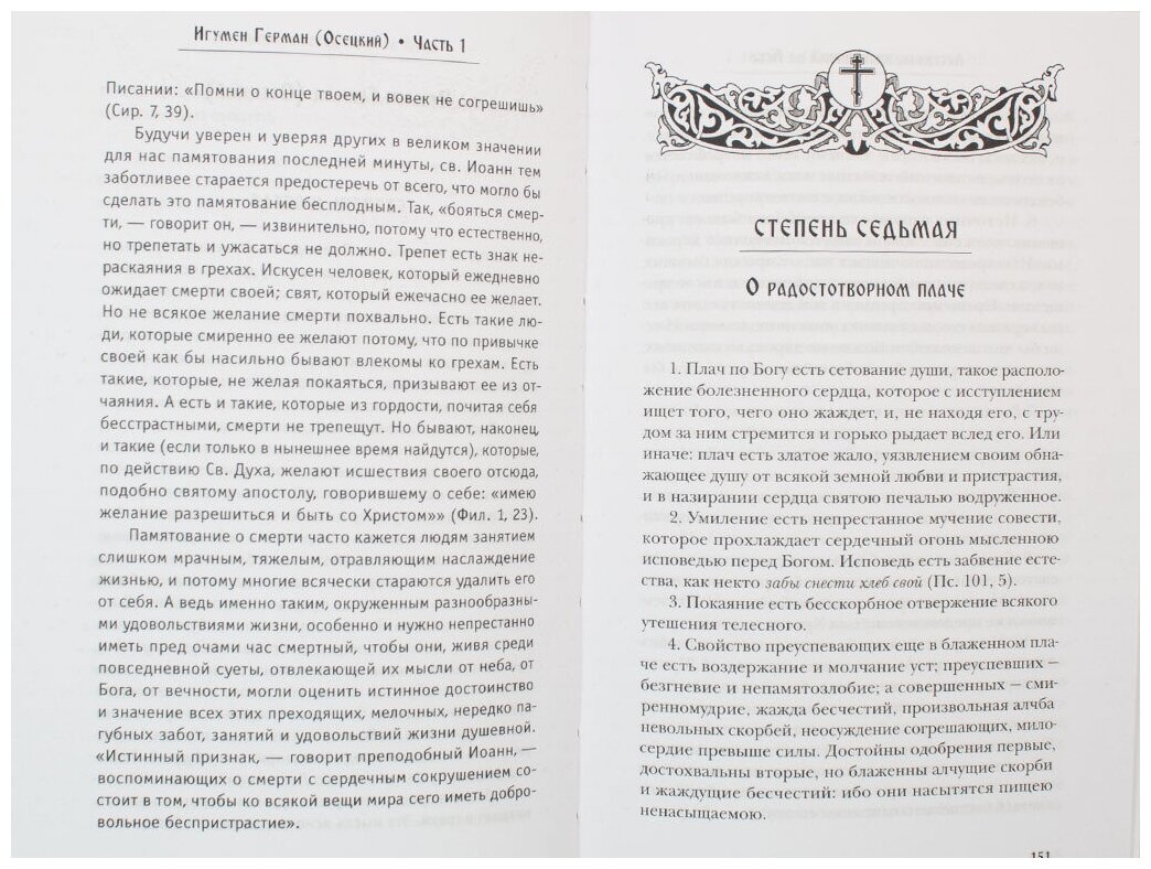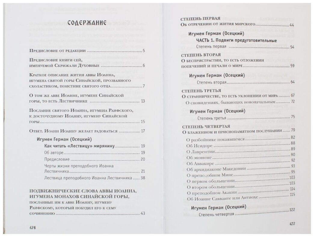Под одной обложкой встретились два совершенно исключительных издания - Лествица Преподобного Иоанна Лествичника и труд по толкованию Лествицы игумена Германа (Осецкого) "Как читать "Лествицу" мирянину", который не выходил в свет примерно более 150 лет.
