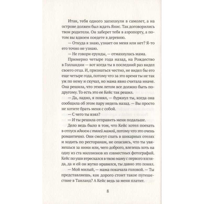 Прочитала на одном дыхании! Такая ностальгия по подростковым приключениям! 14 лет , каникулы, остров, Греция. Папа с которым давно не общался, и друзья. Новый- старый друг, у которого есть девушка. И вот они втроем и все время принадлежит только им троим. Жаркая, чудесная, безумно летняя! С кипящими страстями, ссорами, первым поцелуями и влюбленностью! Очень классная книга, читать и подросткам и взрослым, чтобы окунуться вот в те самые эмоции подросткового взросления и приключений.