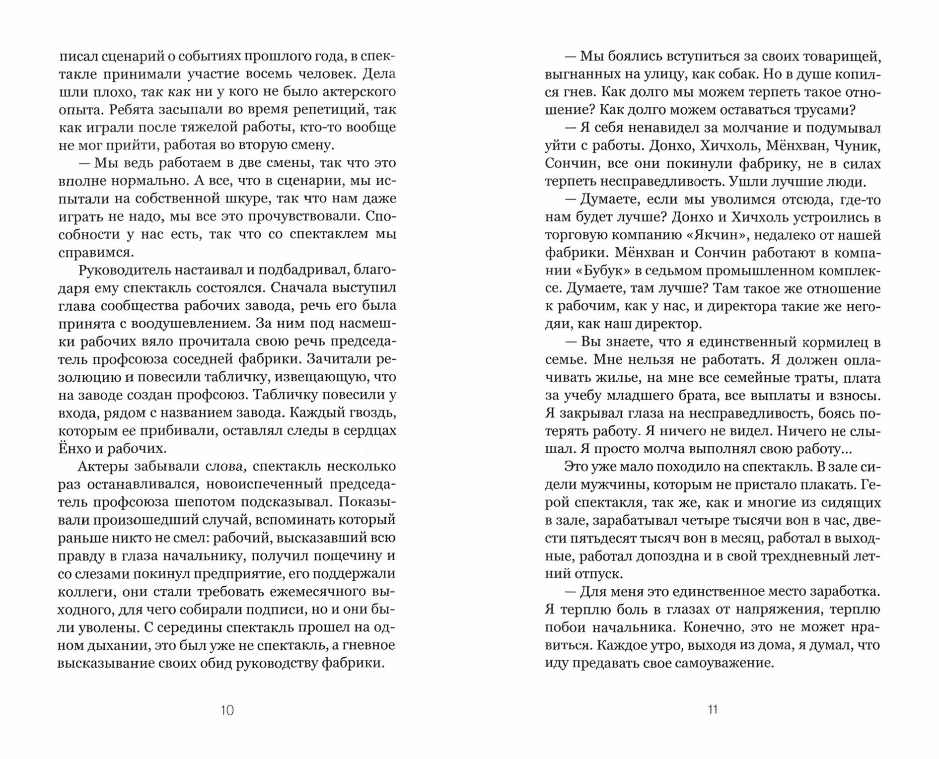 Сборник из 5 рассказов о волне забастовок, которые прошли по всей Южной Корее в 1986-1991 годах. Произведения подобраны так, что показывают эволюцию рабочего движения за свои права от первых робких попыток одиночных протестов до повсеместной организации профсоюзов. Этот путь борьбы был очень непростым: забастовки жестко подавлялась властями, людей избивали до смерти, доводили до самоубийства и скрывали факты от общественности. И чтобы добиться нормальной оплаты труда и отмены обязательных переработок, профсоюзам пришлось приложить огромные усилия, при этом многие лидеры профсоюзов были убиты или арестованы.