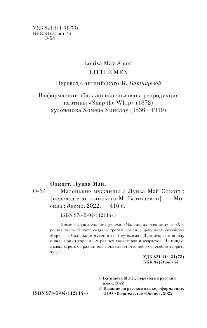 Книга: Маленькие мужчины (Луиза Мэй Олкотт); Эксмо, Редакция 1, 2022