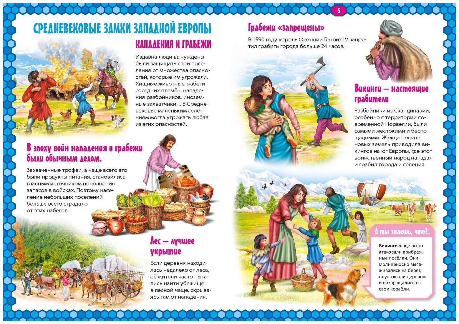 На страницах нашей энциклопедии вы узнаете, почему в Средние века строили мощные крепости и большие замки, кто в них жил и как их защищали, чем занимались пираты Карибского моря, а также познакомитесь с воинами разных стран: от римских легионеров до средневековых рыцарей, викингов и самураев.