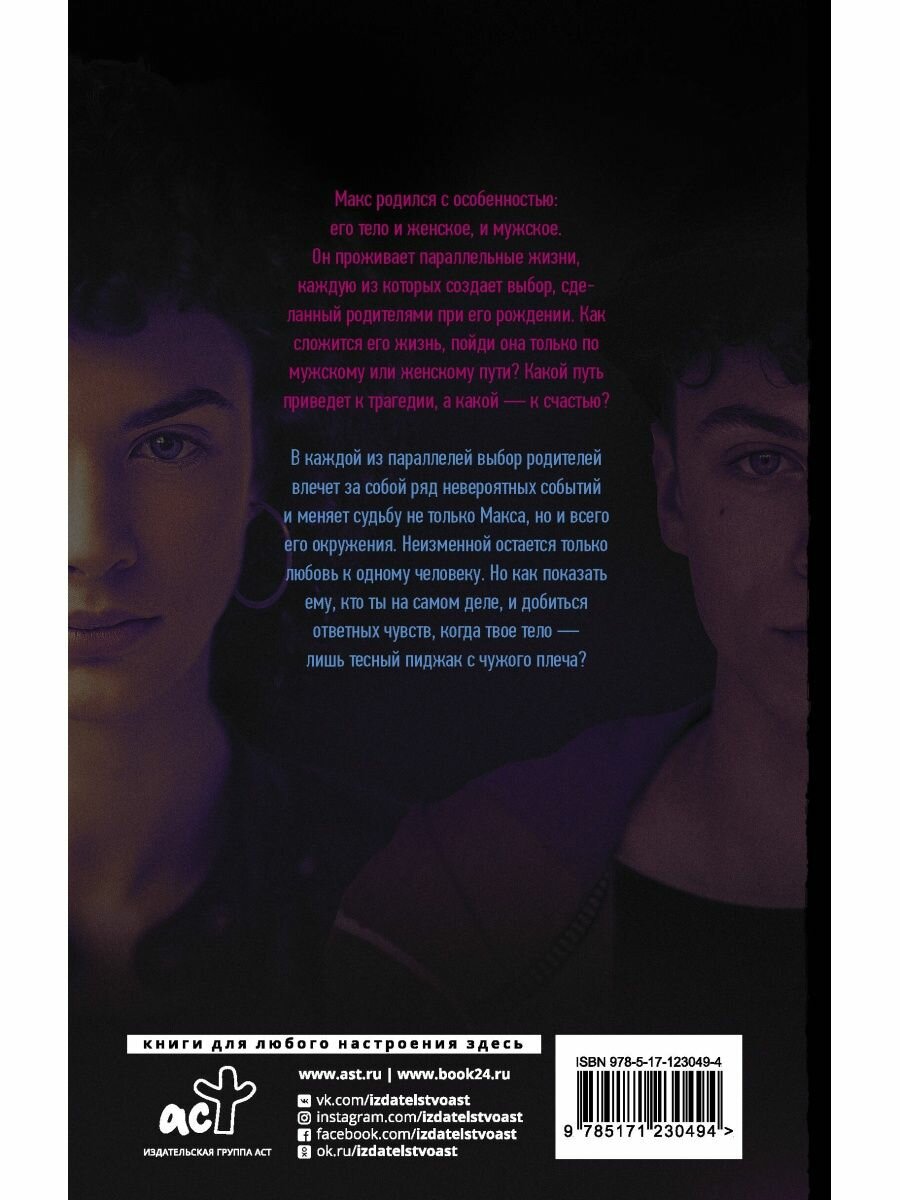 Макс родился с особенностью: его тело и женское, и мужское. Он проживает параллельные жизни, каждую из которых создает выбор, сделанный родителями при его рождении. Как сложится его жизнь, пойди она только по мужскому или женскому пути? Какой путь приведет к трагедии, а какой - к счастью? В каждой из параллелей выбор родителей влечет за собой ряд невероятных событий и меняет судьбу не только Макса, но и всего его окружения. Неизменной остается только любовь к одному человеку. Но как показать ему, кто ты на самом деле, и добиться ответных чувств, когда твое тело - лишь тесный пиджак с чужого плеча?