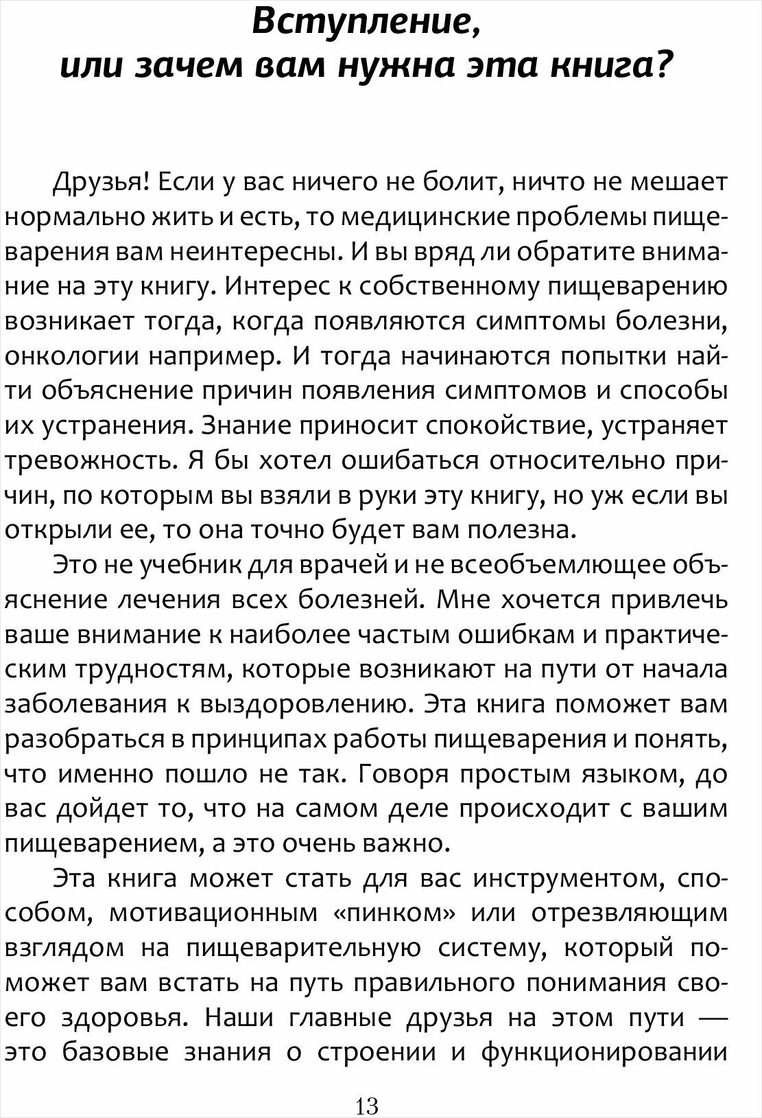 Перед вами не учебник для врачей и не инструкция по лечению всех болезней. Эта книга просто и доступно поможет разобраться в принципах работы пищеварения и понять, что именно пошло не так. Автор привлекает внимание к наиболее частым ошибкам и практическим трудностям, которые возникают на пути от начала заболевания к выздоровлению. Вы узнаете о пищеварении если не все, то очень много. А зная, как работают желудок, печень и кишечник, становится проще понимать, что именно нужно сделать для их восстановления. Сергей Вялов - врач-гастроэнтеролог с международной квалификацией и опытом работы в Германии, гепатолог, кандидат медицинских наук, медицинский консультант телепрограмм "О самом главном", "Я худею", "Контрольная закупка" и других на федеральных телеканалах (Первый, Россия, НТВ). В его активе более 160 научных статей и более 20 книг для врачей. Берите на вооружение только проверенную информацию, берегите себя и будьте здоровы!