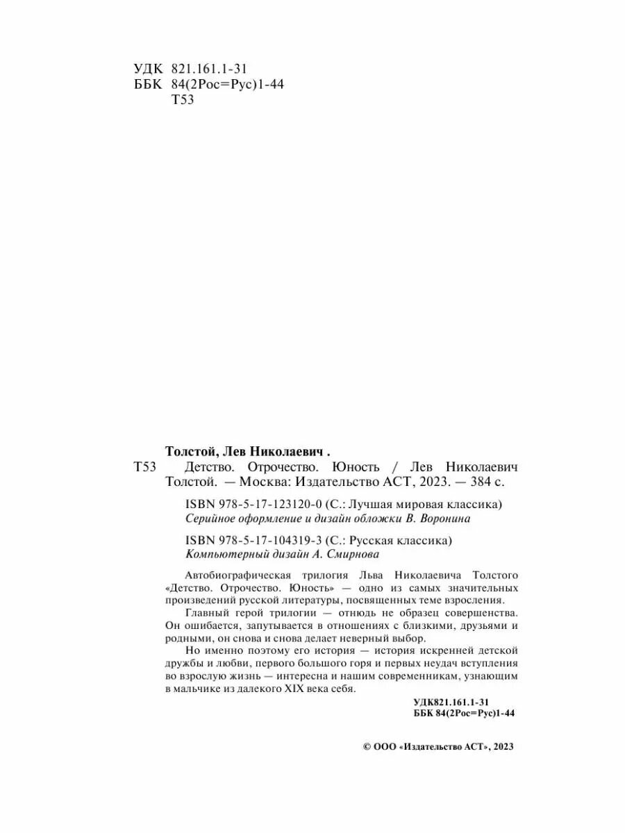 Детство. Отрочество. Юность (Толстой Лев Николаевич); ООО "Издательство Астрель", 2020