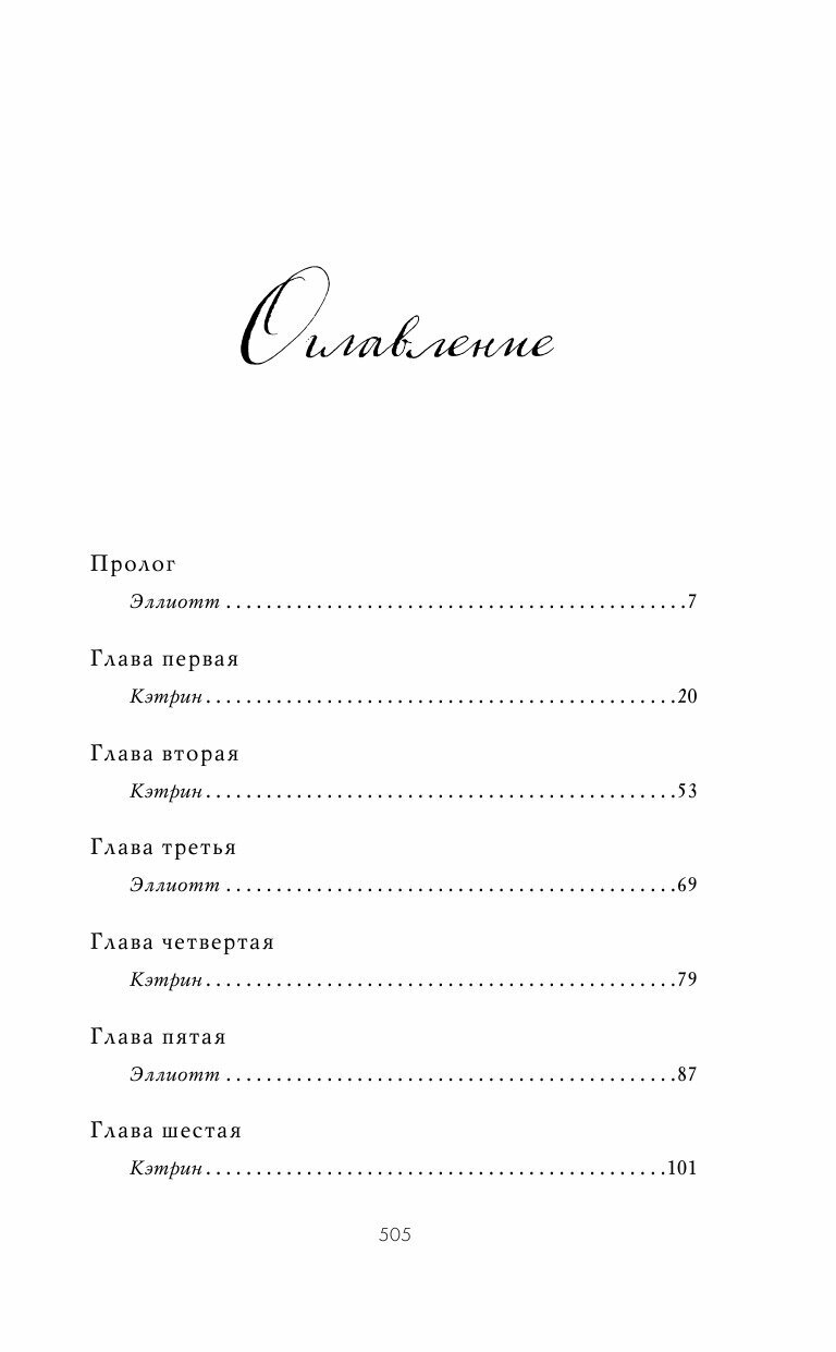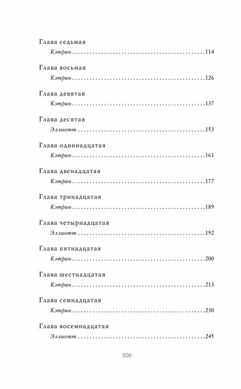 Если в начале первые 150 страниц было читать очень увлекательно ,как развивались отношения Кэтрин и Эллиота,то с 250-300 странице я поняла что сюжет крутится можно сказать на одной ноте. Всю оставшуюся книгу мне казалось что в книге не происходит никаких действий,только постоянно диалоги которые бывали читать временами скучновато,герои перестали притягивать и были моменты когда просто засыпала на диалогах. На последних 100 страницах я сдалась,и просто дочитала эпилог в книге но и там ничего прям такого удивительного я не прочла. Можно сказать что это не самая моя удачная книга в этом месяце