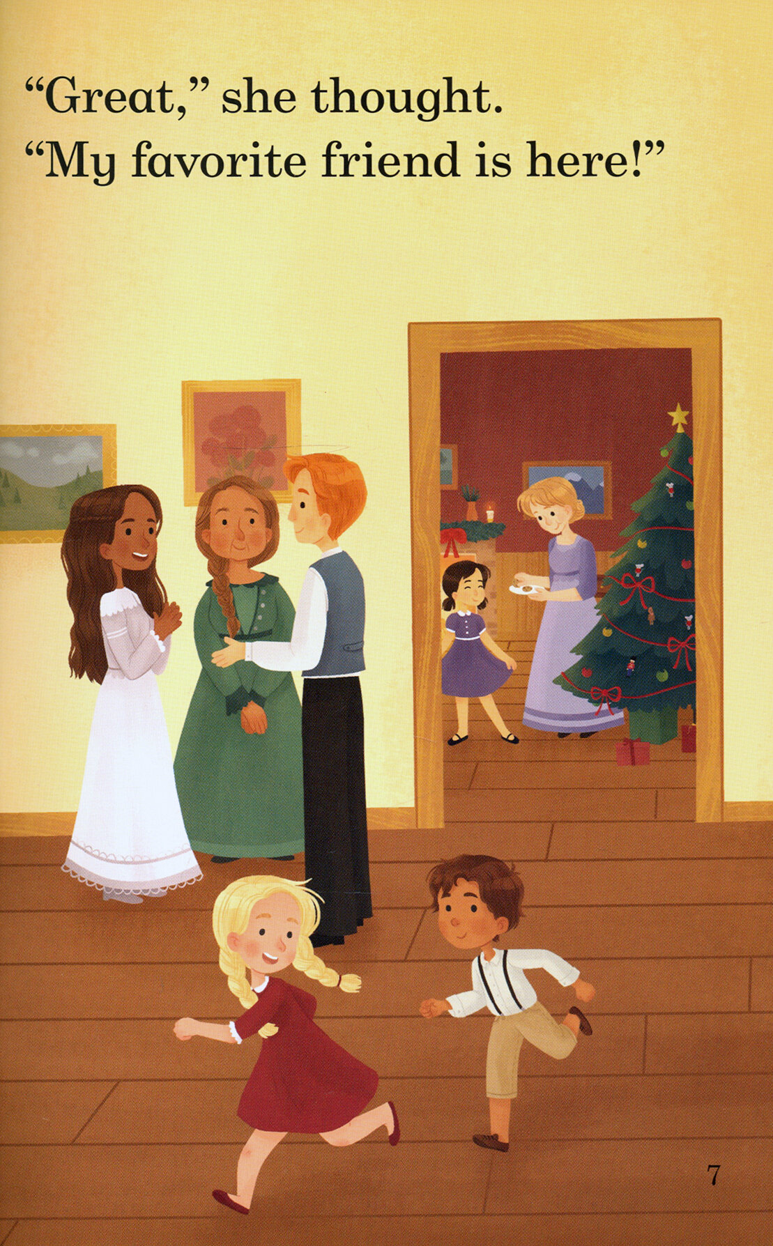 It is Christmas. The toymaker gives Clara a present. The present is the Nutcracker! Clara has a dream. She flies to Candy Land and meets the Sugarplum Fairy!