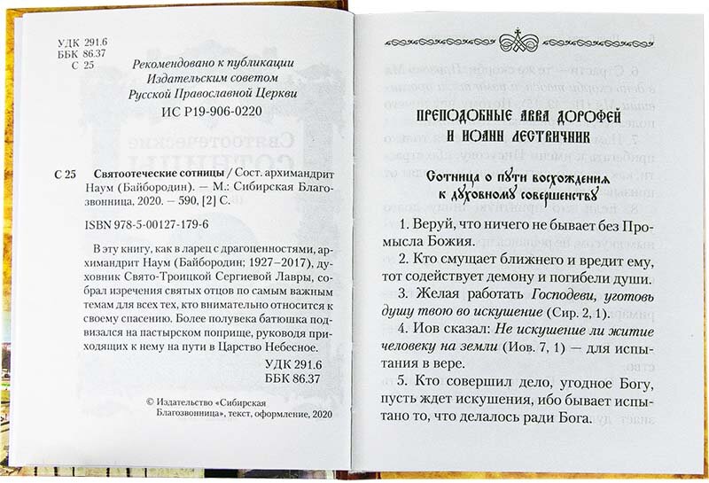 Книга: Святоотеческие сотницы (Архимандрит Наум (Байбородин Николай Александрович)); Сибирская Благозвонница, Сибирская Благозвонница, 2020