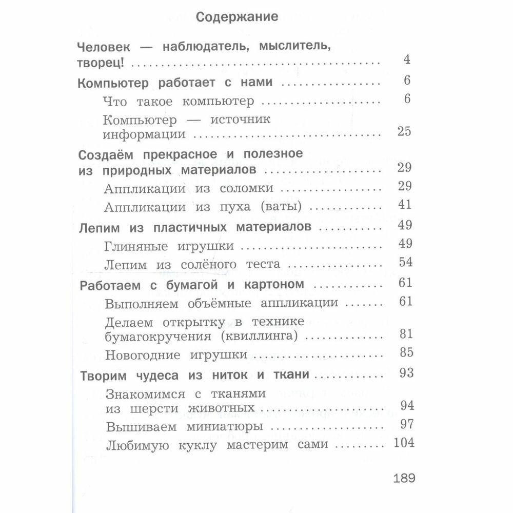 Содержание учебника реализует задачи по достижению школьниками личностных, метапредметных, предметных результатов в изучении технологии. В процессе учебной деятельности третьеклассники закрепляют умения в обработке бумаги, ткани, природных и пластичных материалов, знаково-символической, дизайн-проект-ной деятельности и формируют умения в обработке древесины и металла, в области информационно-коммуникативных технологий и бытового труда.