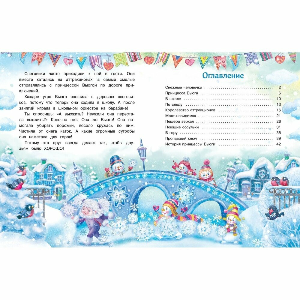 Маленький Снеговичок и Льдинка, разыскивая непоседу Снегошу, попадают в волшебную пещеру и знакомятся с принцессой Вьюгой. Эта взбалмошная вредная девчонка мечтает, чтобы у нее было много друзей. Что только она не придумывает, чтобы удержать снеговичков - катает на веселых аттракционах, угощает мороженым, устраивает невероятное путешествие по пещере. В ней есть и невидимый мост, и неприступная гора, и поющие сосульки и зеркала-обманщики...Но сможет ли Вьюга завоевать этим дружбу или нужно что-то другое?