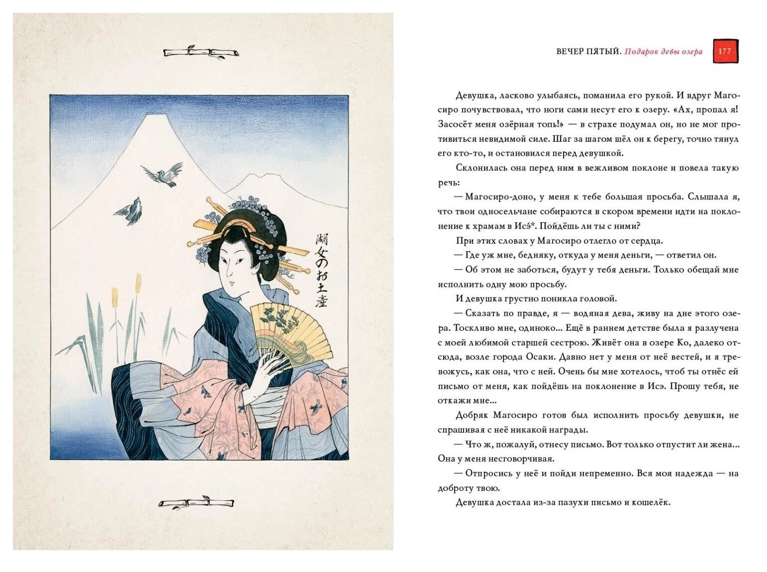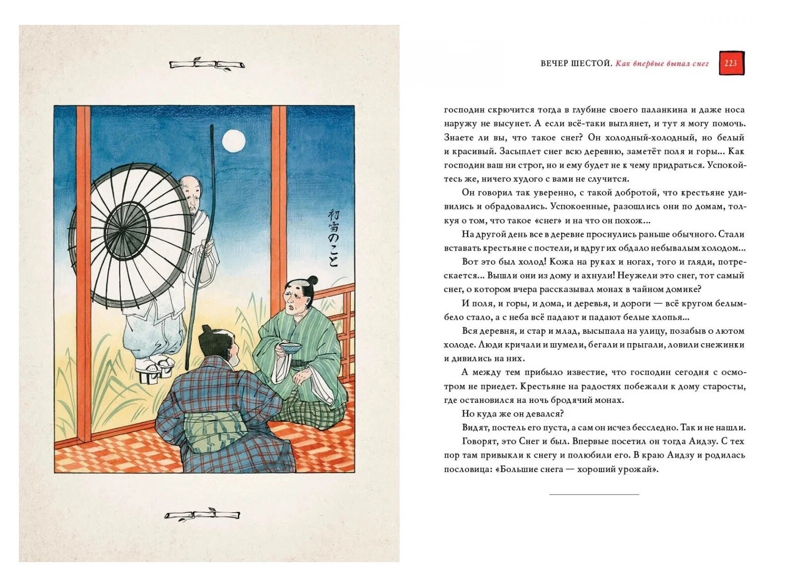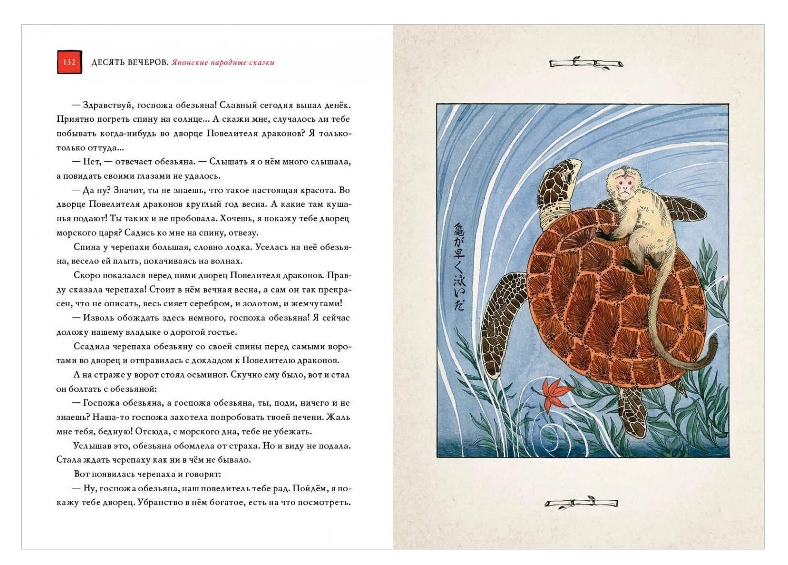 Я совершенно равнодушна к восточным сказкам, но эта книга - произведение искусства. Русская художница передала атмосферу, достойную работ великого Хокусая, и это поразительно. Нас с ребенком не сразу затянуло в сюжеты, мы больше разглядывали оформление. А потом уже вчитались. Какое-то эстетское удовольствие - покупать, разглядывать и читать такие книги. Купила по акции с небольшой скидкой, но уверена, что и полной суммы она стоит. Полностью оправдывает потраченные деньги.