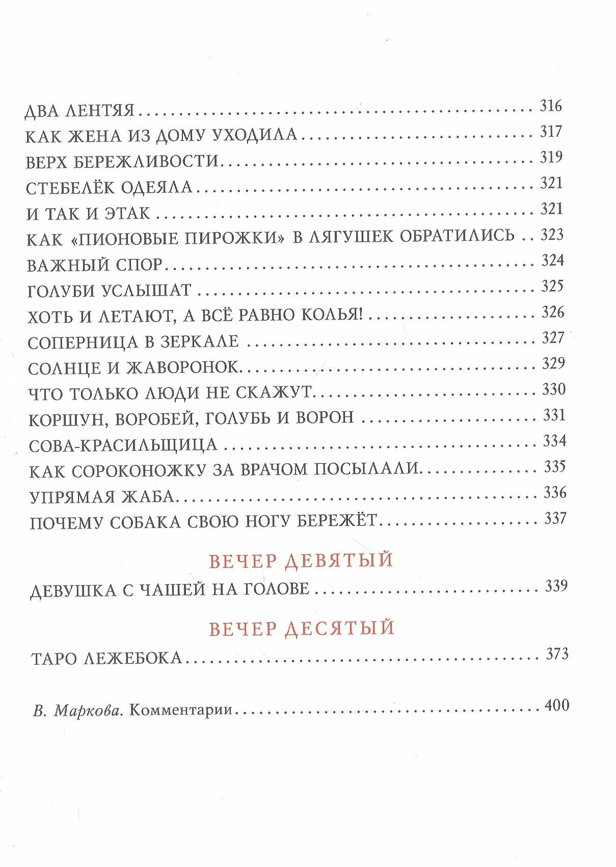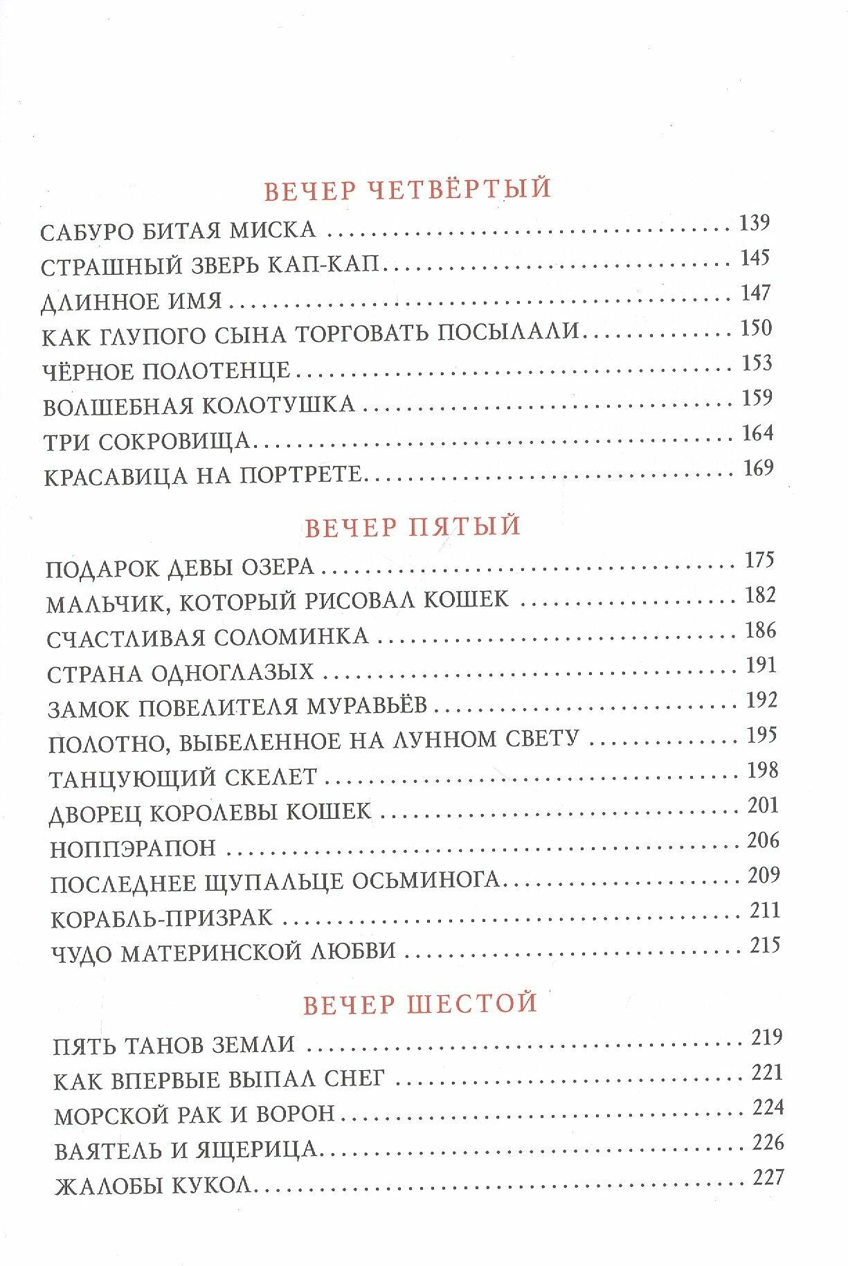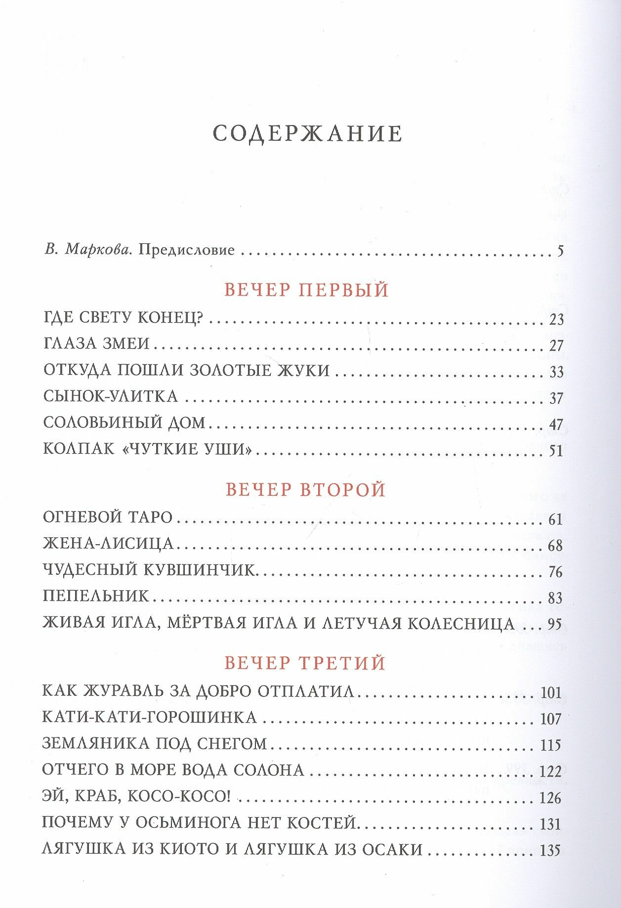В сборник "Десять вечеров" вошли волшебные сказки, сказки о животных, сказки-притчи, смешные сказки, где главные герои - плуты и хитрецы, и множество других замечательных историй. Вечер за вечером юные читатели будут знакомиться с персонажами японского фольклора: лукавыми лешими тэнгу и водяными каппа; прекрасными девами-птицами и женщинами-змеями; лисицами-оборотнями и проказливыми барсуками; весельчаком и шутником Хикоити.