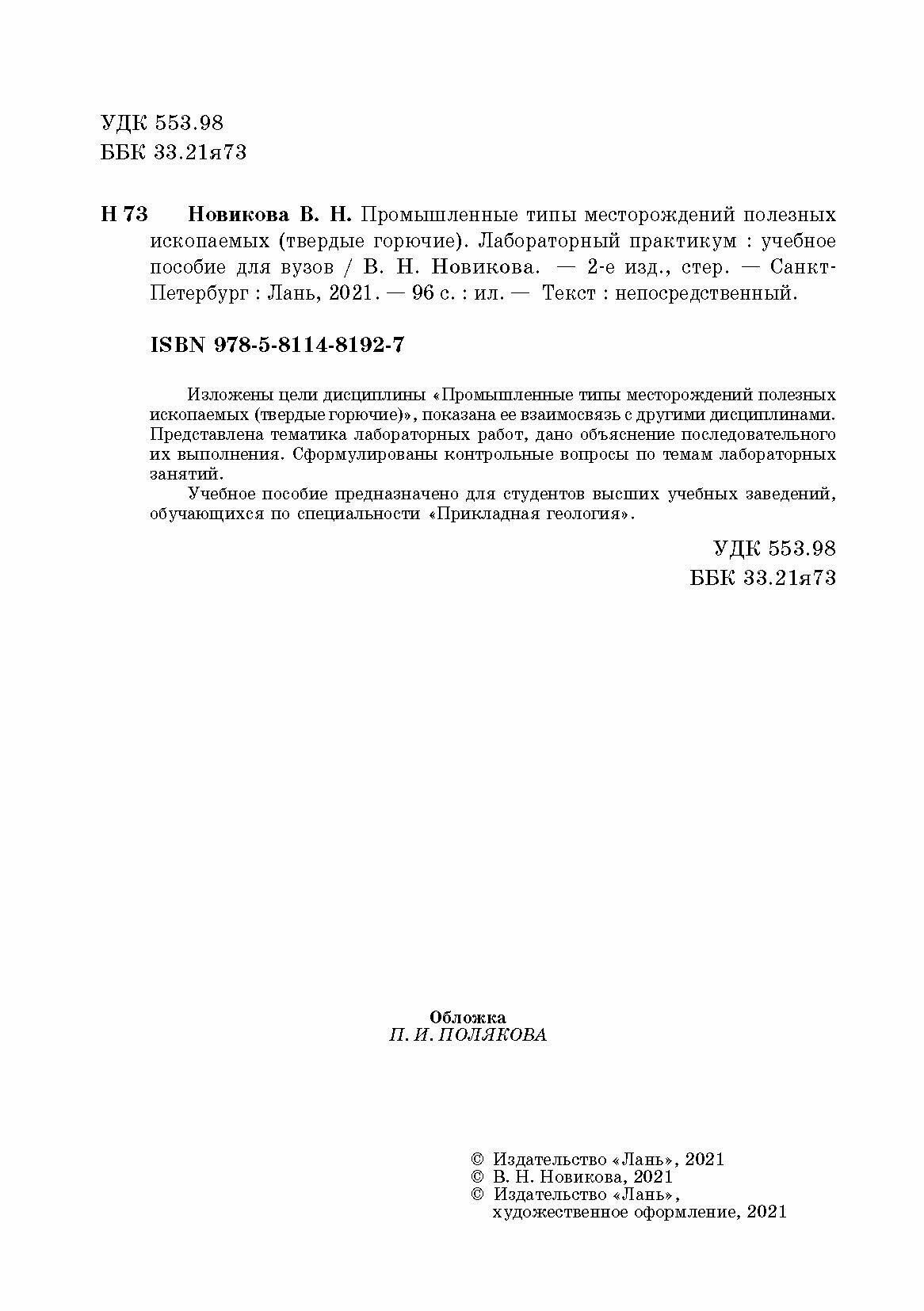 Промышленные типы месторождений полезных ископаемых (твердые горючие). Лабораторный практикум (Новикова Валентина Николаевна); Лань, 2020