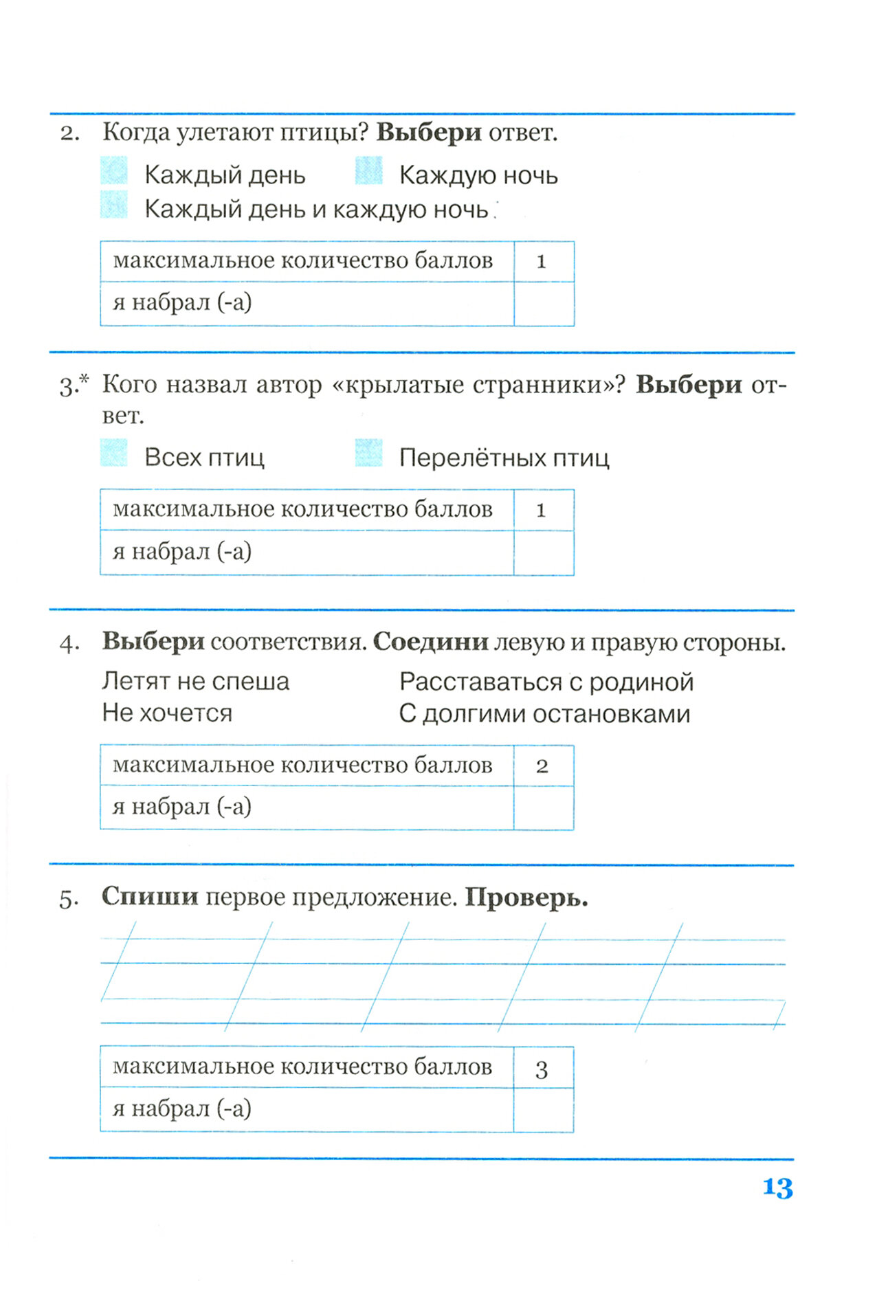 Работы предусматривают самооценку учеником и оценку работы учителем. Для самооценки есть таблички в конце каждого номера. Проверяя работу ученика, учитель вносит результаты в таблицу на "Страничке результатов". Таким образом учитель: