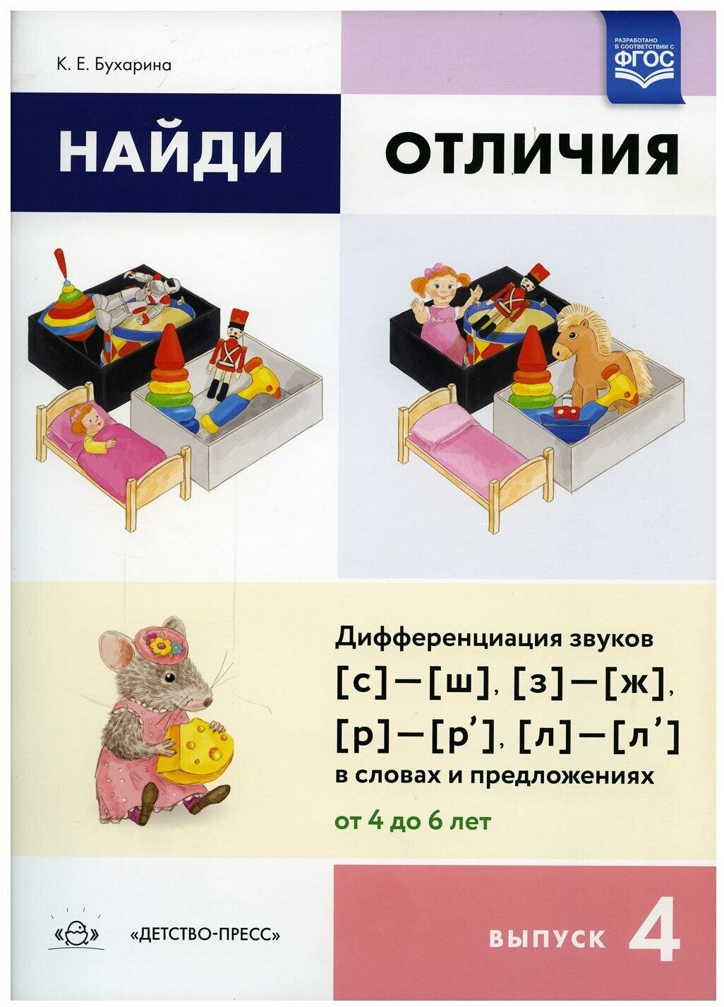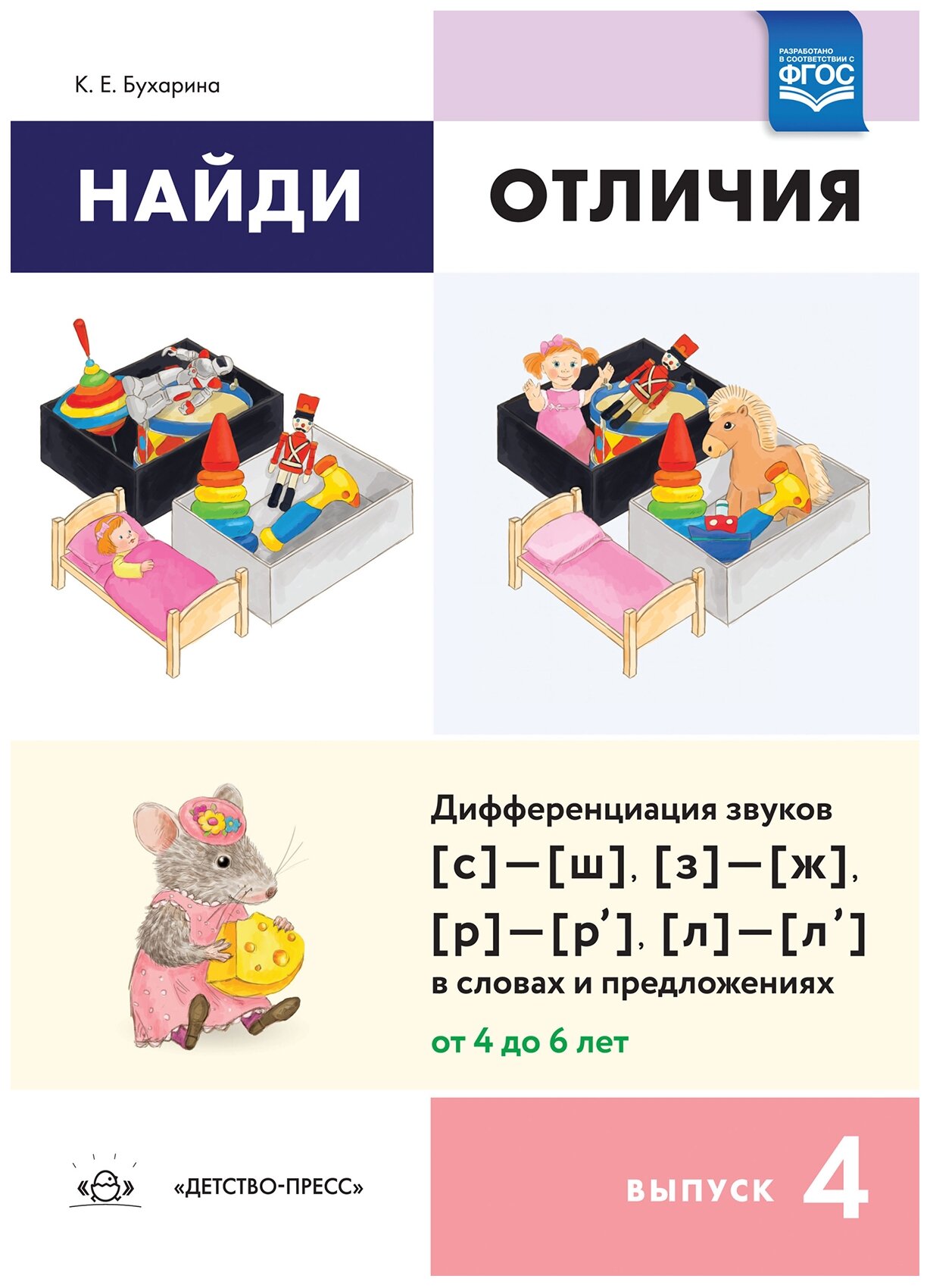 Найди отличия. Выпуск 4. Дифференциация звуков [с]-[ш] [з]-[ж] [р]-[р']-[л]-[л'] в словах и предл. (Бухарина Ксения Евгеньевна); Детство-Пресс, 2020