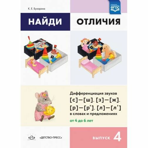 ![Книга: Найди отличия. Выпуск 4. Дифференциация звуков [с]-[ш] [з]-[ж] [р]-[р']-[л]-[л'] в словах и предл. (Бухарина Ксения Евгеньевна); Детство-Пресс, 2020](https://cdn.xn--80agbcqdjc3d.xn--p1ai/images/prodacts/290/96275/96275250_naydi-otlichiya-vyipusk-4-differentsiatsiya-zvukov-s-sh-z-j-r-l-v-slovah-i-predl-detstvo-press.jpg)