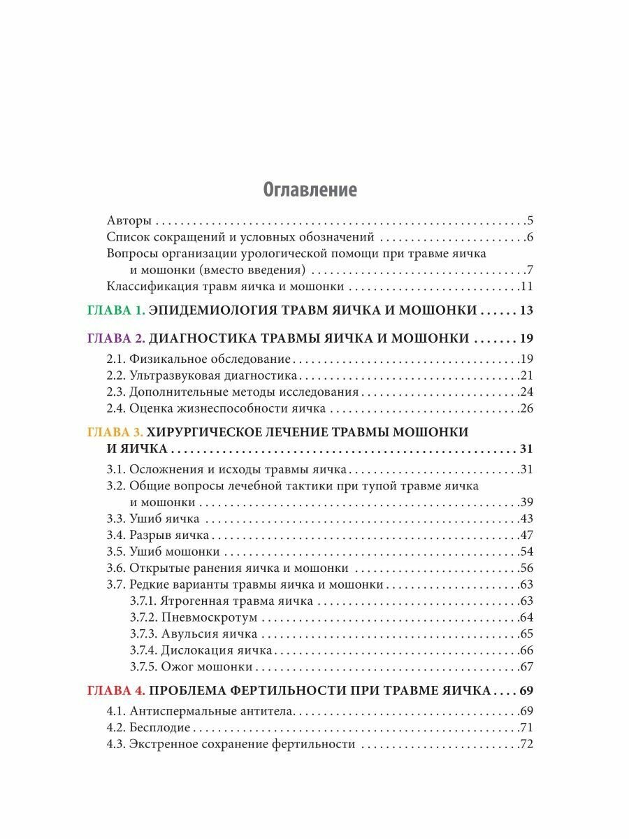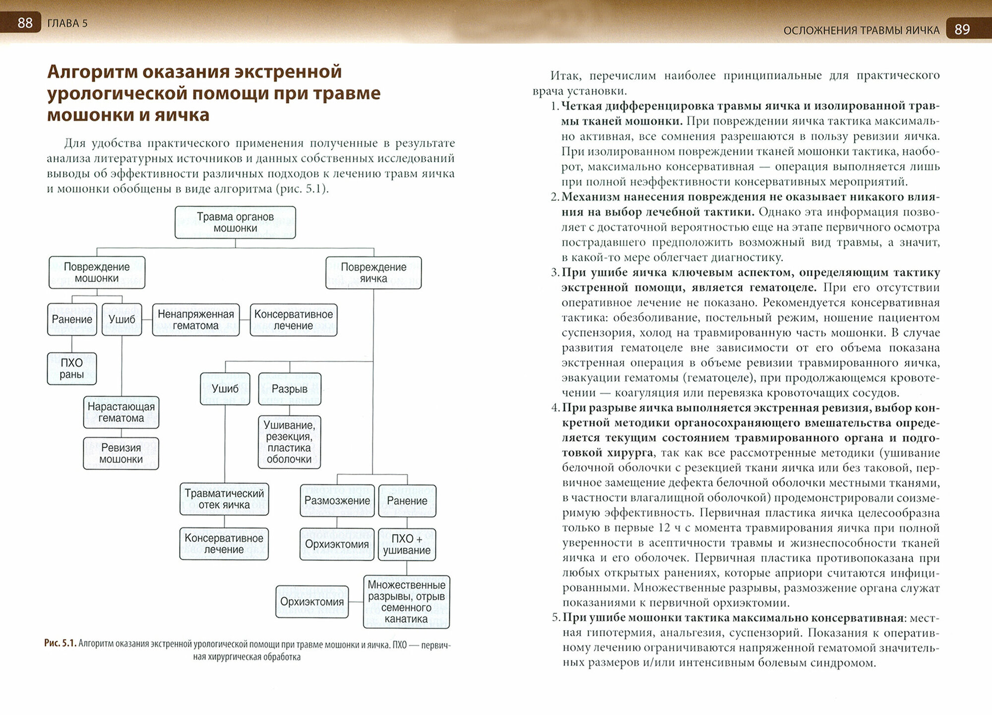 В руководстве представлены алгоритмы антибактериальной профилактики при оперативных вмешательствах по поводу травм яичка и мошонки, а также эмпирической антибактериальной терапии инфекционно-воспалительных осложнений. Каждая схема детально разъяснена и обоснована, и все они оптимизированы по трем направлениям: клиническая эффективность, экономическая целесообразность, эпидемиологическая безопасность (предотвращение селекции полирезистентных штаммов микроорганизмов). Рассмотрена проблема снижения фертильности в отдаленном периоде травмы яичка. Предложен алгоритм экстренной урологической помощи при травме яичка и мошонки.