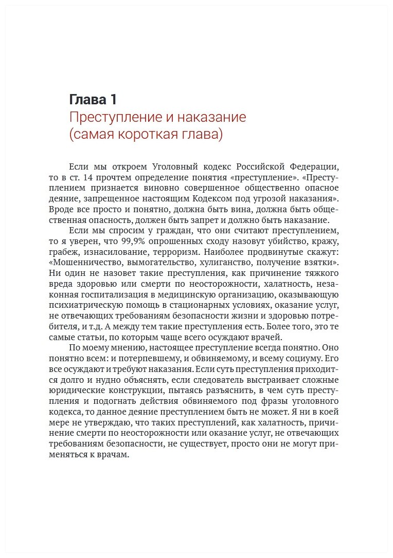Основная мысль автора заключается в том, что лечение невозможно без ошибки и чем сложнее случай, чем сложнее и тяжелее ситуация, в которой находится врач, чем меньше у врача времени на принятие решения, тем выше процент ошибок. Взгляды и выводы автора основаны на личном опыте и судебной практике.