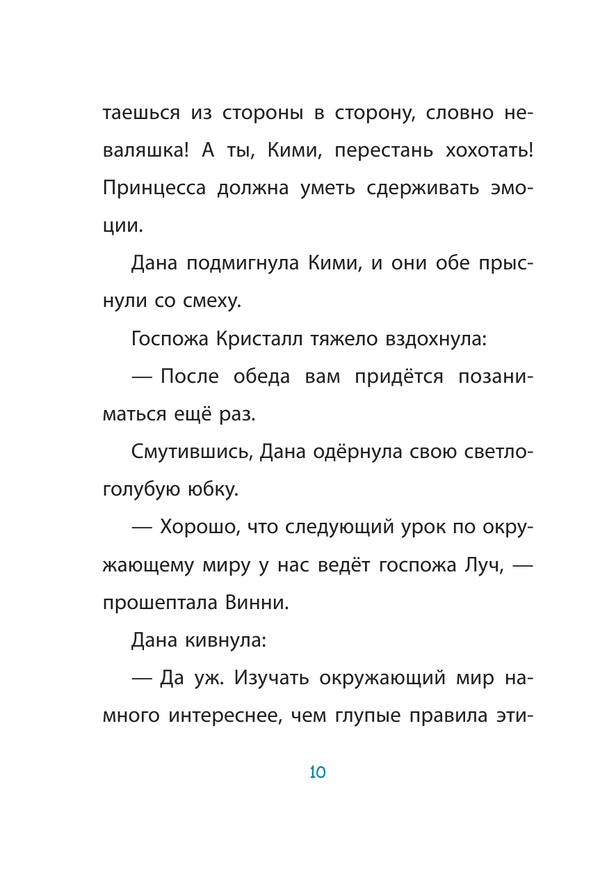 Вторая по счету история из серии Школа принцесс Дж.Аллерт (всего их 6). Отличный выбор для первого самостоятельного чтения. Текст стилистически довольно прост,шрифт крупный, много цветных иллюстраций. В конце есть забавный тест для девочек и флажок с изображением героини книги Даны.