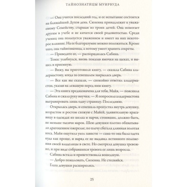 Книга «Тайнознатица Муирвуда» так же как и вся серия издана в мягкой обложке. Первая часть запомнилась как мрачная и динамичная история погони, с нагнетанием саспенса. Вторая часть получилось более философской и сильной. Героиня резко умнеет и сюжет толкают не попытки исправить свои ошибки, а рассуждения, основанные на опыте и знаниях, которые Майя получила в Аббатстве.