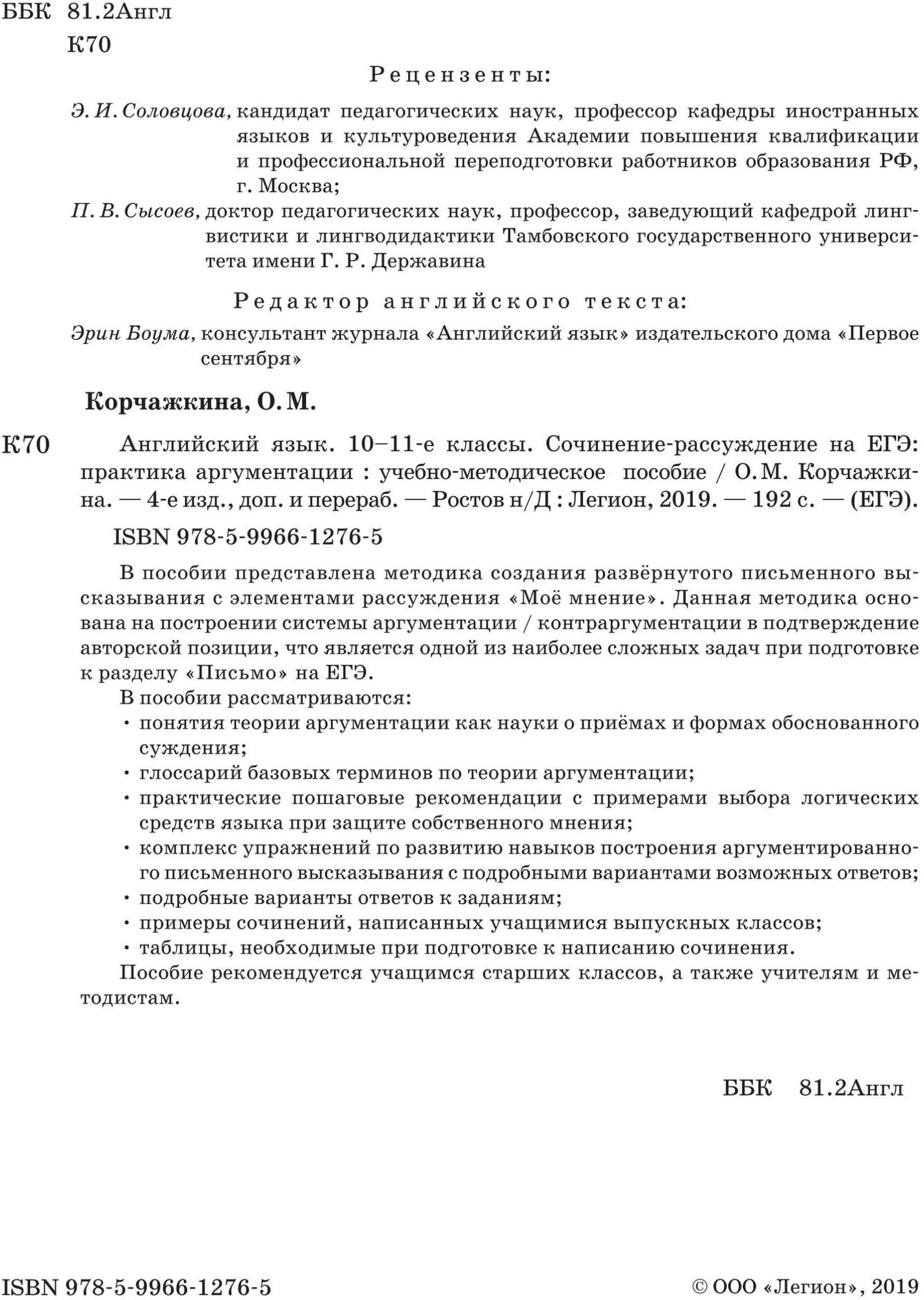ЕГЭ. Английский язык. 10-11 классы. Сочинение-рассуждение. Практика аргументации (Корчажкина Ольга Максимовна); Легион, 2020