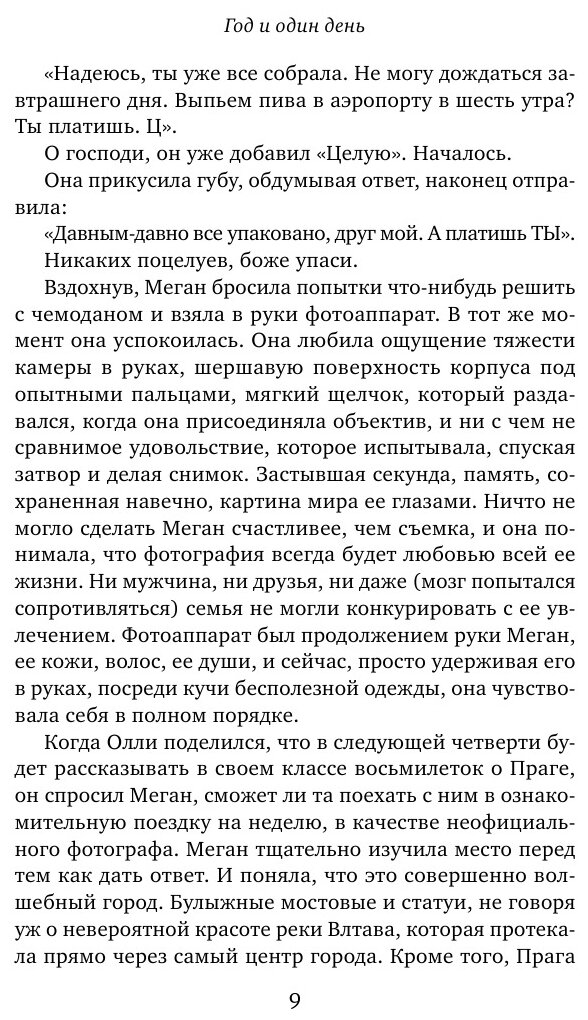 "Год и один день" – отличная книга для чтения на досуге. История о трех женщинах .которых судьба привела в один и тот же город. У каждой из них своя история, за развитием которой так интересно наблюдать. Очень понравилось описание Праги. Создалось ощущение, как будто я лично была там вместе с героями книги. Сюжет протекает плавно и никуда не спешит. А кульминационный момент поражает до глубины души. И все же это теплая книга о любви, путешествиях, разочарованиях и новых знакомствах, с которой так приятно посидеть вечером с чашкой чая.