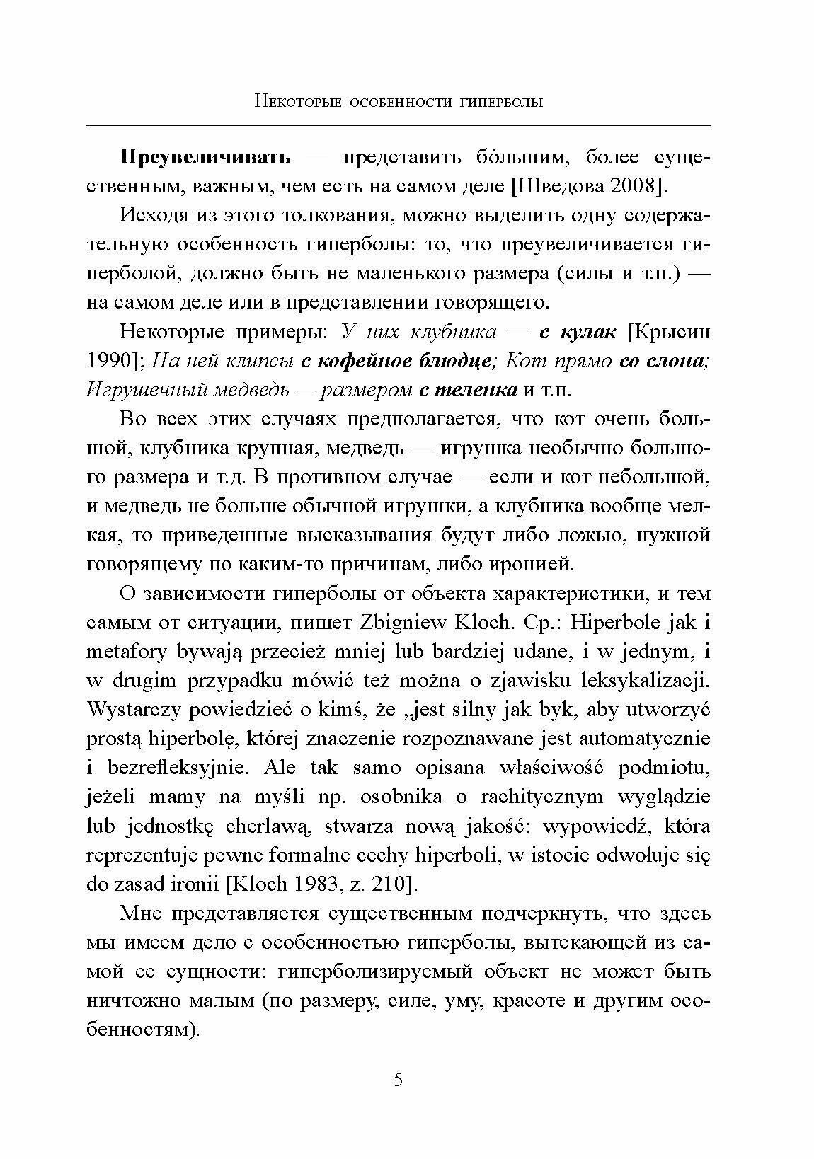 В этой книге гипербола исследуется в её отношении к слову как единице лексики, но не текста. В задачу работы не входит анализ гиперболы — как средства изобразительности в языке художественной литературы. Примеры из текстов художественной литературы приводятся для иллюстрации высказываемых суждений. Автора интересуют вопросы: порождает ли гиперболизация как прием чрезмерного преувеличения самостоятельные лексические единицы, подобно тому, как прием метафоризации порождает метафору, а перенос по смежности — метонимию, как гипербола относится к тропам, с какими тропами активно взаимодействует, влияет ли ирония на проникновение гиперболы в разные виды тропов. В книге также рассматривается одно из смежных с гиперболой явлений — интенсификация, которую часто отождествляют с гиперболизацией, и другие вопросы.
