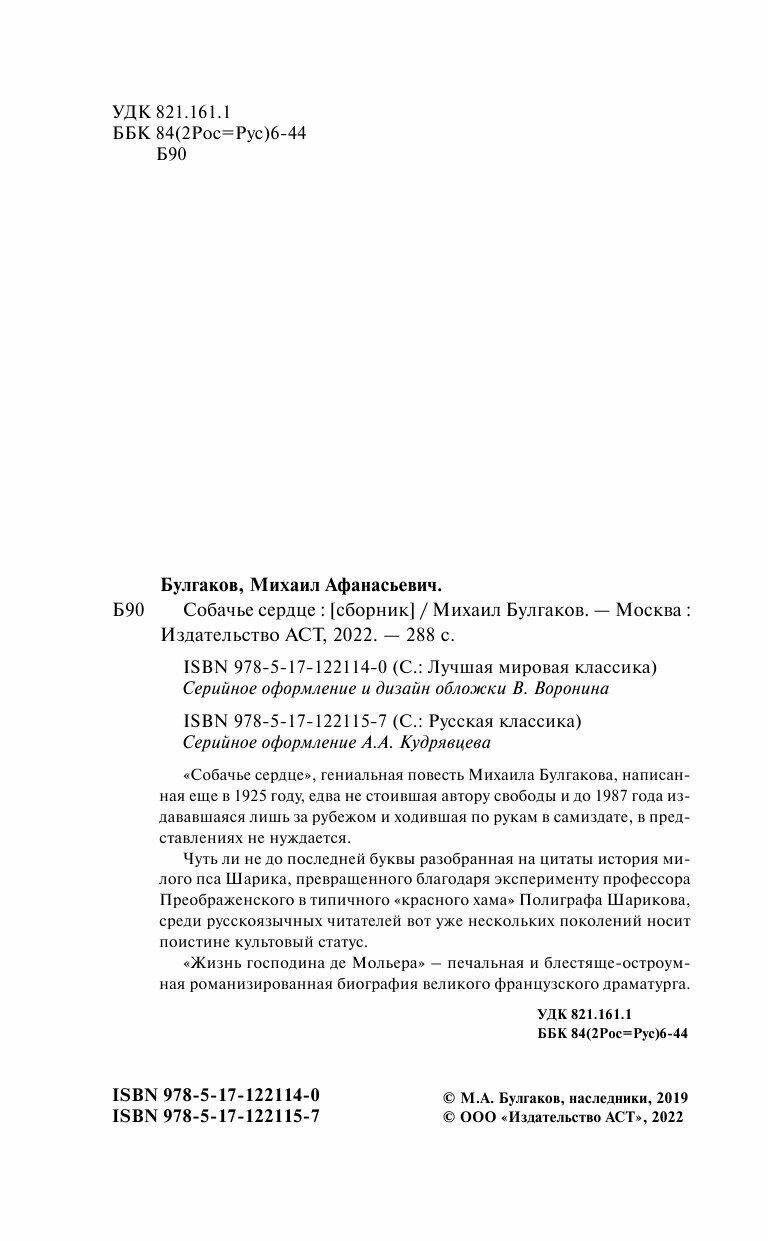 Книга: Собачье сердце (Булгаков Михаил Афанасьевич); ООО "Издательство Астрель", 2020