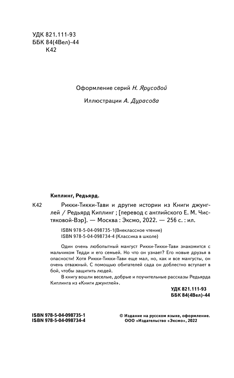 Рикки-Тикки-Тави и другие истории из Книги джунглей (Редьярд Киплинг); Эксмо, Редакция 1, 2022