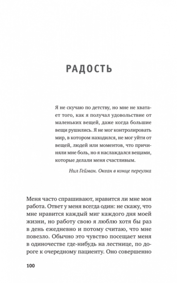 Я редко оставляю отзывы о прочитанных книгах, но в этот раз просто не могу удержаться и остаться в стороне! Книга читается очень легко и быстро. С трудом могу подобрать слова о содержании книги, так как это не возможно, книга просто захватывает дух! В хорошем смысле этого выражения. Эта книга-пожалуй, самая лучшая на сегодняшний день из всех книг на медицинскую тему, которые я прочитала! Честно-честно! Также очень порадовал и вдохновил тот факт, что автор пишет простым языком и без лишнего самовосхваления. В общем, рекомендую эту книгу к прочтению всем, кто неравнодушен к медицине! Вы точно не разочаруетесь и не пожалеете о потраченном на эту книгу времени!??