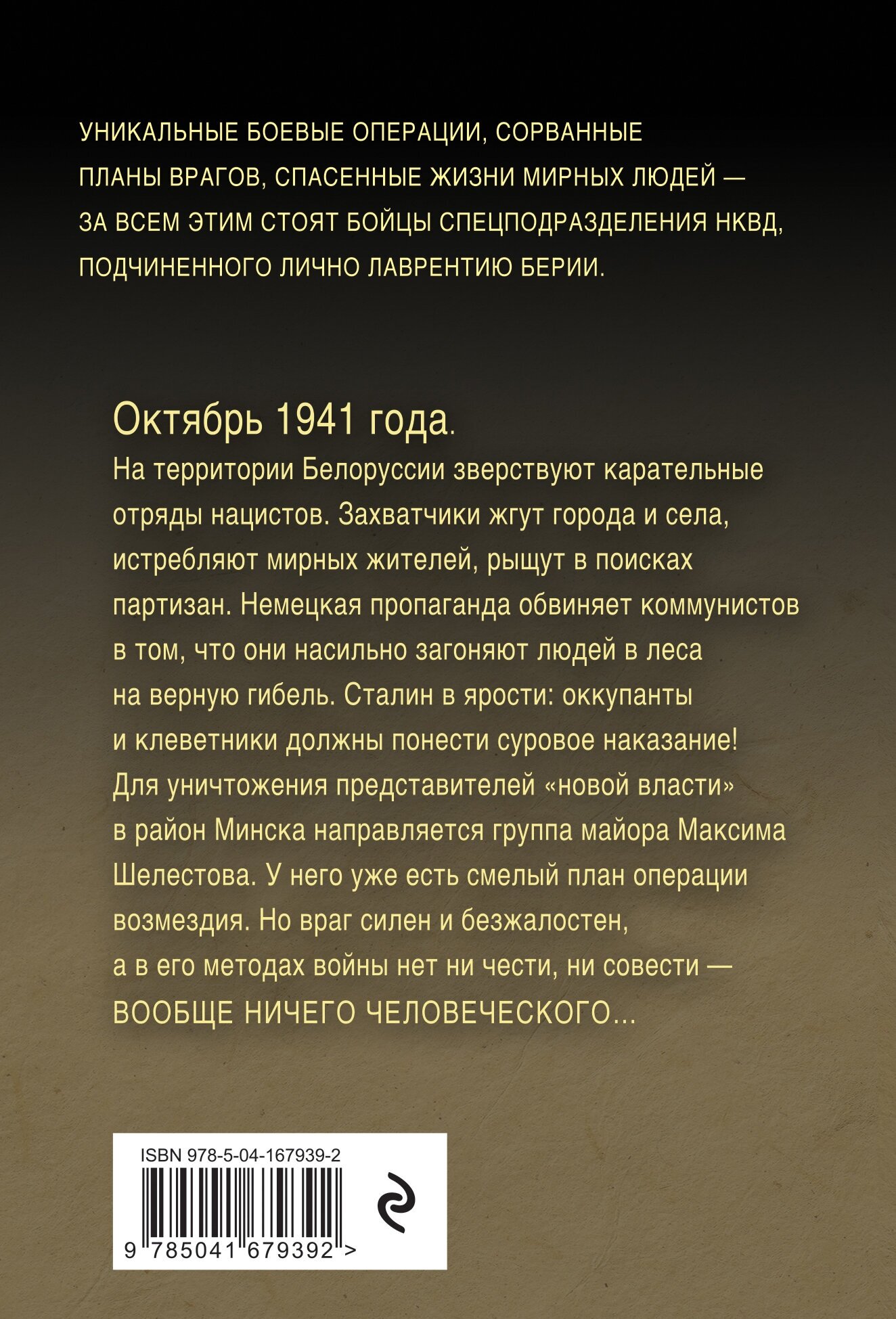Октябрь 1941 года. На территории Белоруссии зверствуют карательные отряды нацистов. Захватчики жгут города и села, истребляют мирных жителей, рыщут в поисках партизан. Немецкая пропаганда обвиняет коммунистов в том, что они насильно загоняют людей в леса на верную гибель. Сталин в ярости: оккупанты и клеветники должны понести суровое наказание! Для уничтожения представителей "новой власти" в район Минска направляется группа майора Максима Шелестова. У него уже есть смелый план операции возмездия. Но враг силен и безжалостен, а в его методах войны нет ни чести, ни совести – вообще ничего человеческого…