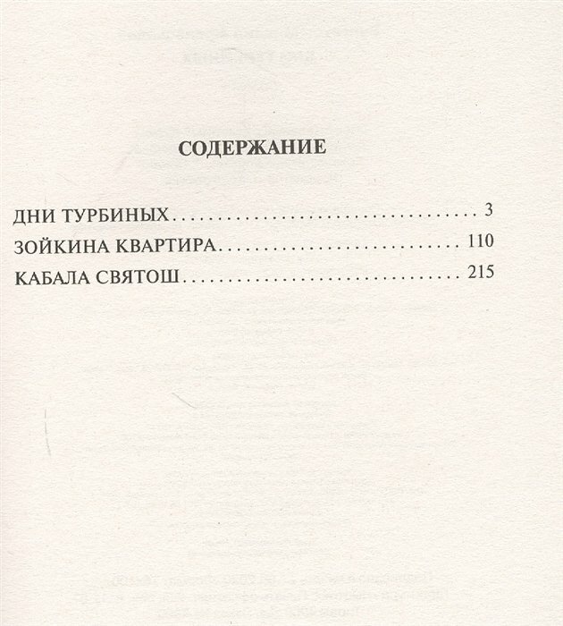 В сборник также вошли "Зойкина квартира", которую сам автор назвал "трагической буффонадой", и "Кабала святош" - пьеса о несчастной любви великого гения Мольера.