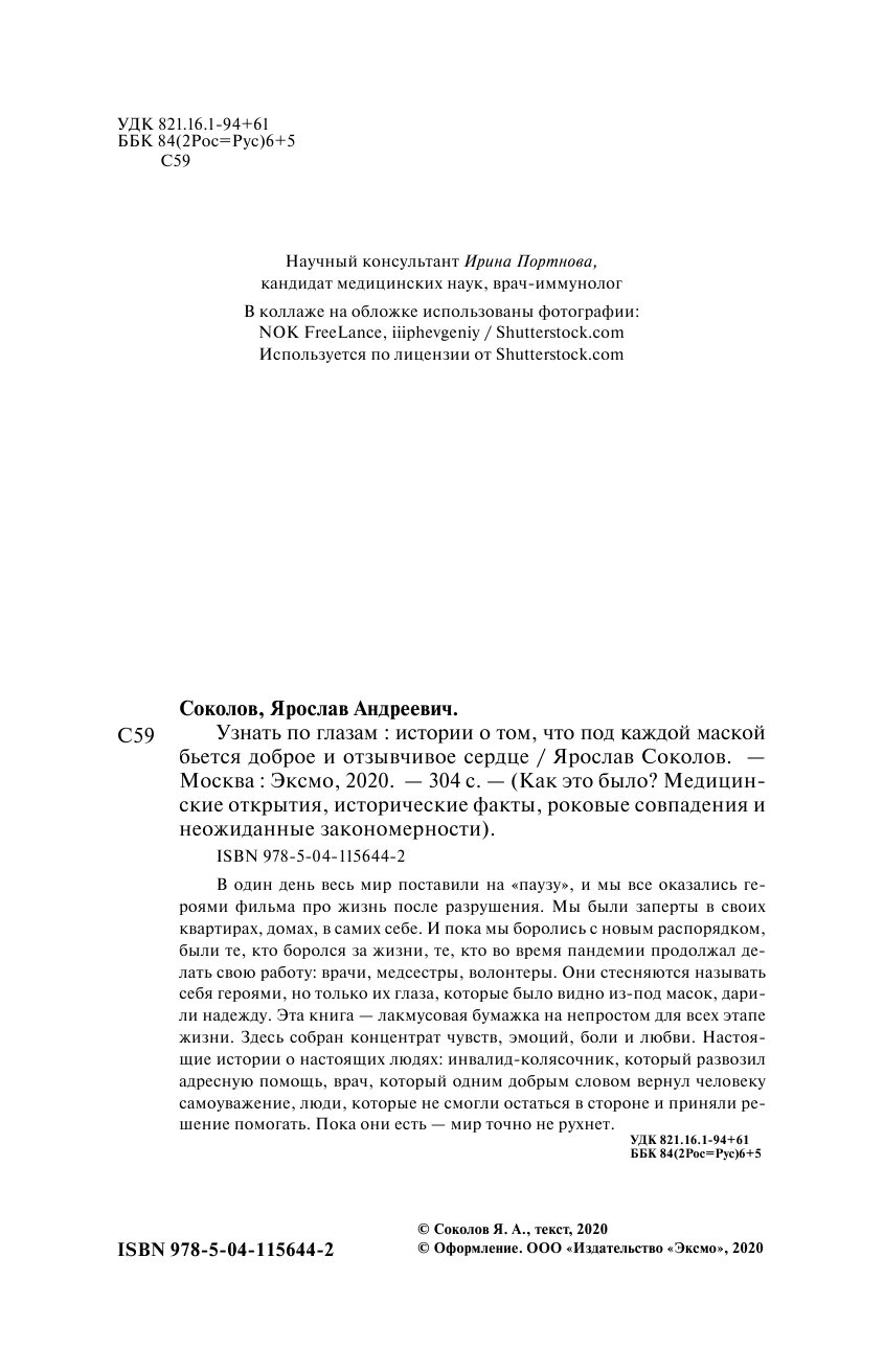 Узнать по глазам. Истории о том что под каждой маской бьется доброе и отзывчивое сердце (Ярослав Соколов); Эксмо, 2020