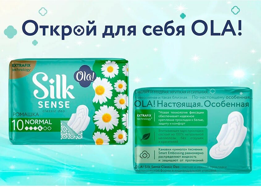 | Полное наименование | Прокладки Ola! Silk Sense Normal гигиенические ромашка 10 шт |