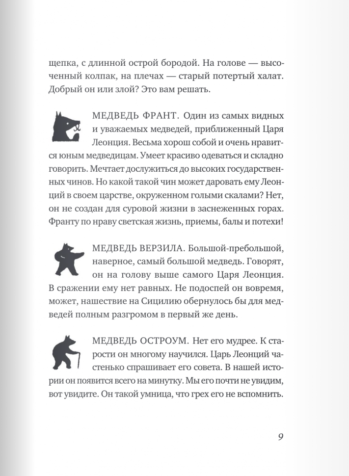 Такую сказку можно и нужно читать даже взрослым. Она о том, как на Сицилии голодные медведи спустились с гор в долину и начали воевать с людьми. Или так: эта сказка о том, как, сталкиваясь с человеком, даже медведь не может устоять перед искушением властью, обманом и наживой.