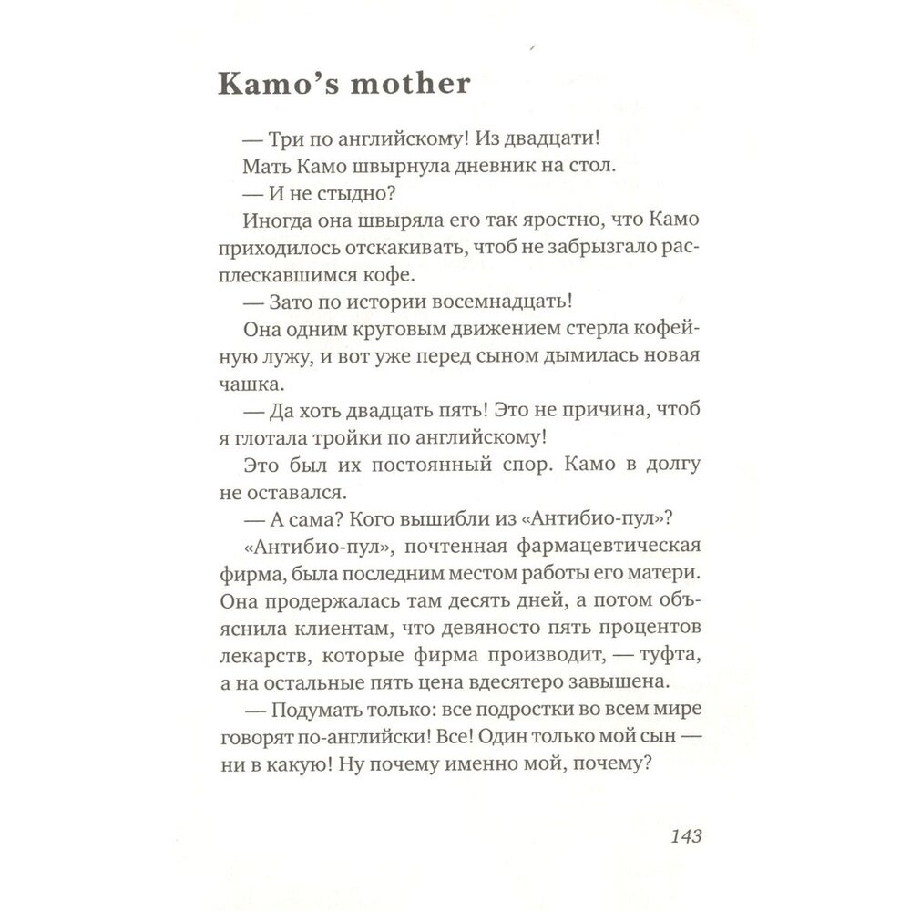 Жизнь французского школьника - не фунт изюму! Особенно если тебя зовут Камо и ты - правнук известного революционера. Что делать, если у любимого учителя распад личности? А как выучить английский за три месяца - вот так, чтобы хорошо? Или еще: к понедельнику надо написать сочинение "Однажды утром вы просыпаетесь и обнаруживаете, что сделались взрослым. В испуге вы кидаетесь в спальню к родителям: они вновь стали детьми. Напишите продолжение". Четыре феерические истории рассказаны лучшим другом Камо, который точно знает, как всё было!