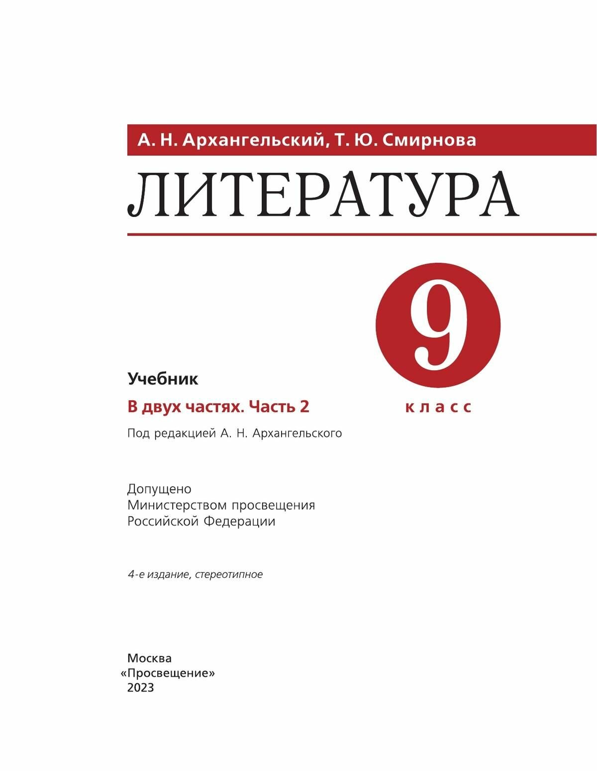 Литература. 9 класс. Учебник. В 2-х частях. Часть 2. (Архангельский Александр Николаевич, Смирнова Татьяна Юрьевна); Просвещение, 2023