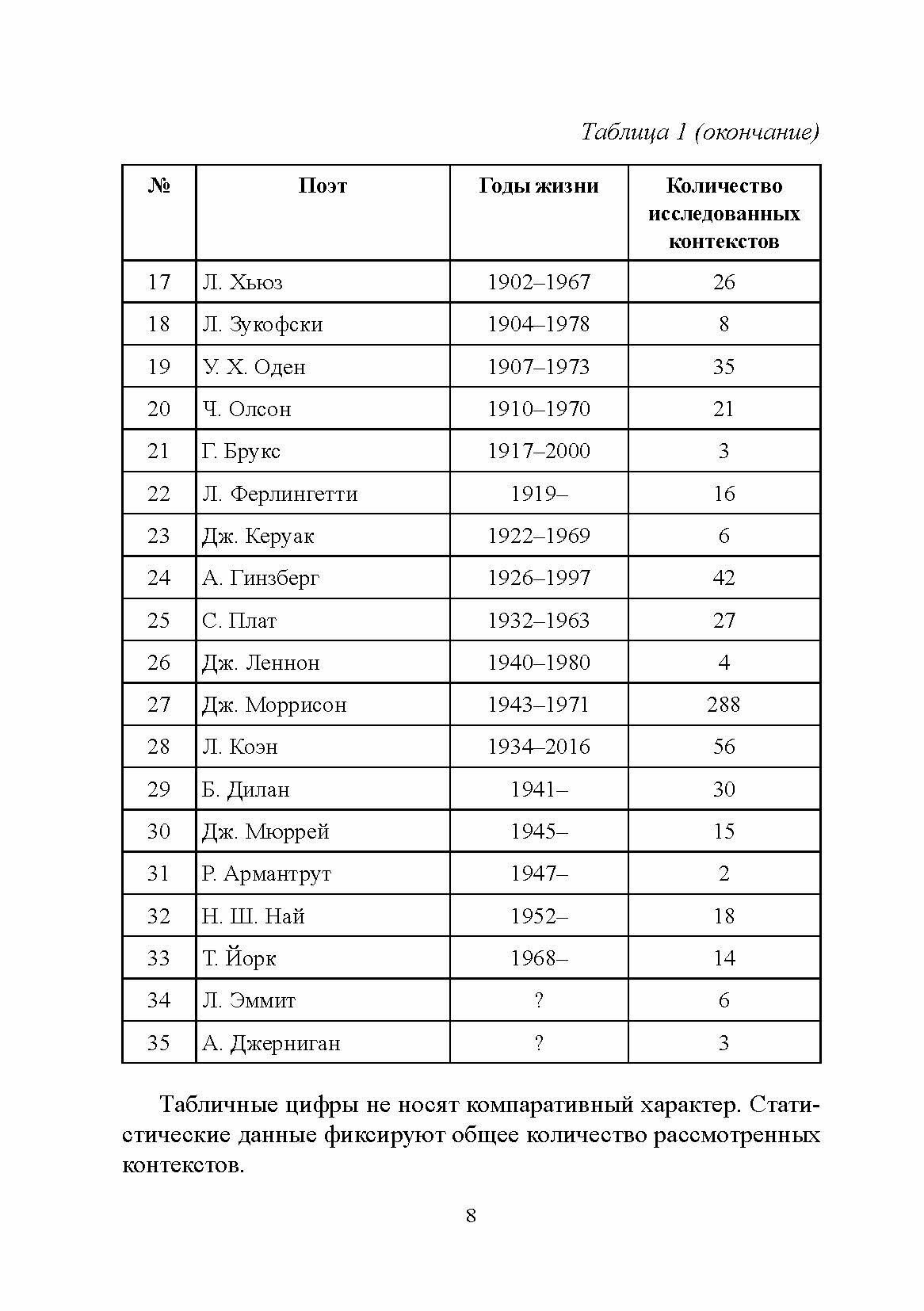 Практический материал обширен. При подготовке монографии было проработано большое количество англоязычных поэтических произведений в период с XVIII по XX в. Исследуемые авторы являются одними из наиболее известных и влиятельных поэтов своего времени.