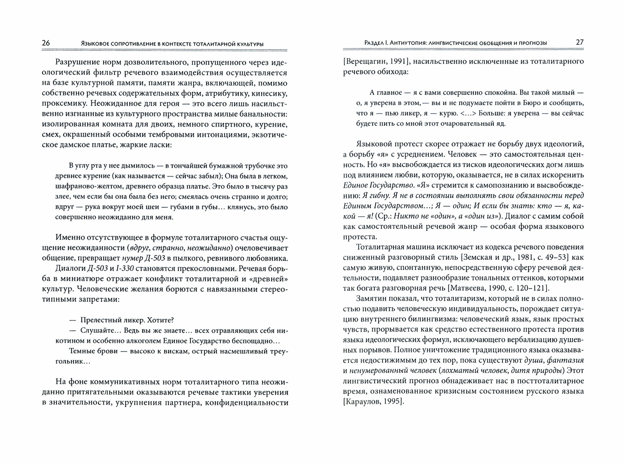 В книгу вошли монография и ряд статей по русскому языку советского периода. В проблемно-тематическом отношении сборник представляет собой продолжение опубликованной ранее монографии Н. А. Купиной "Тоталитарный язык" и сосредоточен на феномене языкового сопротивления тоталитаризму. Два основных способа сопротивления - борьба с тоталитарным языком и языковое противостояние - рассматриваются автором на материале толковых словарей, художественной прозы, поэзии, разговорной речи. В результате определяется характер противодействия давлению абсолютной политической власти, проясняется общая картина функционирования русского языка в СССР.