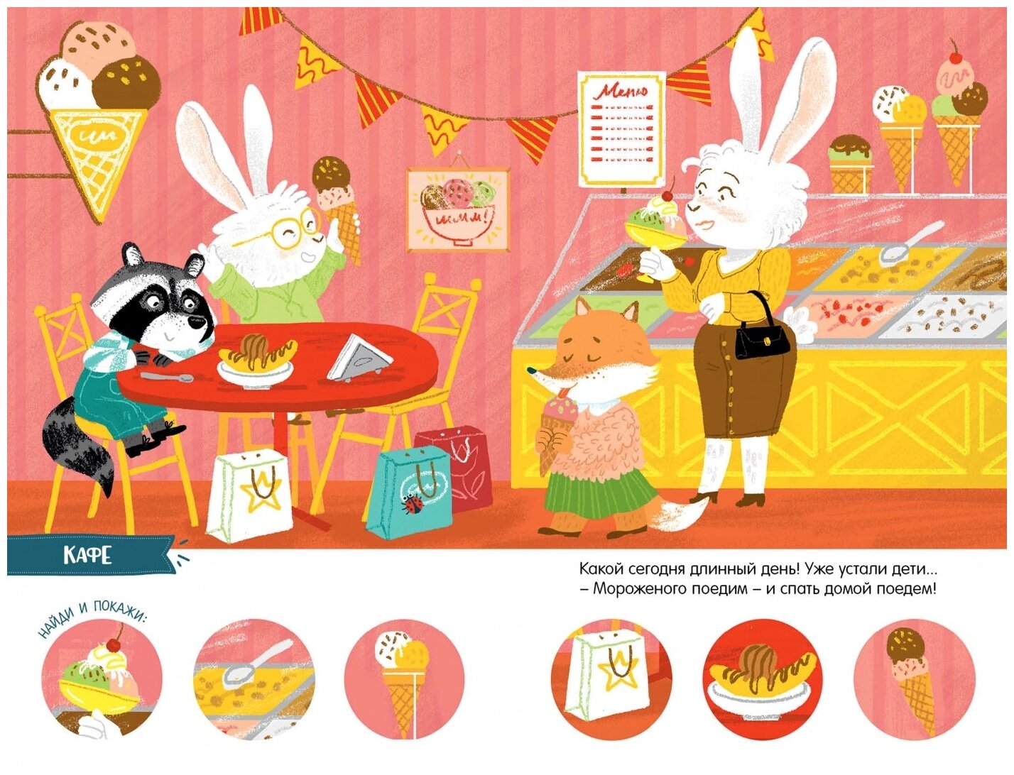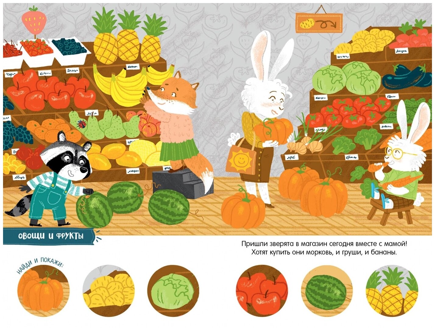 Играть с книгой очень просто: разглядываем детали, запоминаем, ищем и показываем их на большой картинке. А еще знакомимся с окружающим миром, общаемся и расширяем словарный запас.