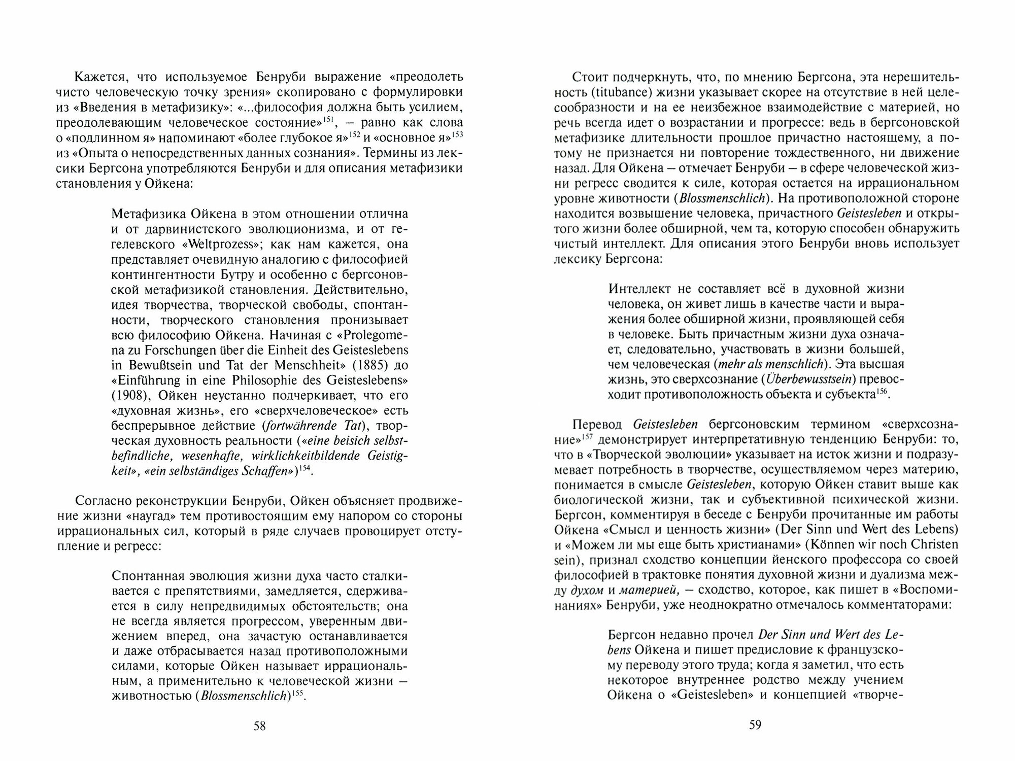 В книге, которую автор назвала "геофилософским атласом", на основании большого числа материалов и документов, в том числе архивных, детально прослеживается история философских контактов Бергсона и немецких мыслителей в первой трети XX в. Остановками в этом маршруте продвижения идей Бергсона в Германии стали четыре города - центры особых философских традиций: Йена, где работал неоидеалист Р. Ойкен и его ученики; Берлин, где идеи Бергсона были во многом восприняты Г. Зиммелем; Гейдельберг, где бергсонизм интерпретировали неовиталист X. Дриш, философ культуры и теолог Э. Трёльч, а также представители неокантианства -В. Виндельбанд, Г. Риккерт и Э, Кассирер; наконец, Гёттинген, где большой интерес к бергсоновскому учению проявил М. Шелер. Автор показывает, что диалоги с немецкими философами, а также опыт Первой мировой войны существенно повлияли на эволюцию взглядов Бергсона, отразившуюся в этико-религиозной концепции, изложенной в "Двух источниках морали и религии" (1932). Книга К. Занфи, открывающая много новых, неизвестных до сих нор страниц истории западной философии первой трети XX столетия, будет интересна и специалистам, и широкой читательской аудитории.