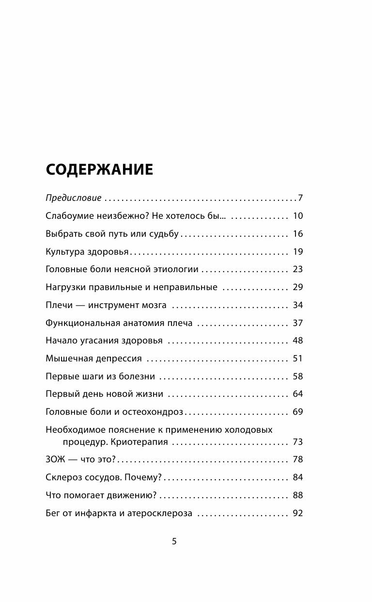 Автор расскажет, как правильно выполнять упражнения, чтобы избавиться от головных болей, а также болей в плече и шее, как укрепить свою психику. В конце книге помещен "Большой жизненный словарь", в котором с оригинальным медицинским юмором описываются состояния краха здоровья людей, игнорирующих подсказываемый автором путь к здоровью.