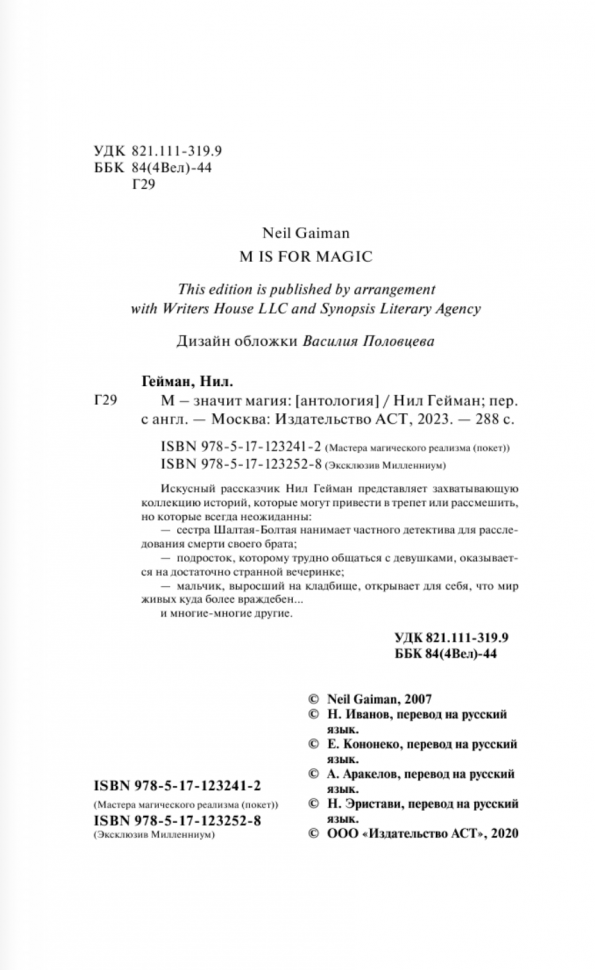 М - значит магия. Антология (Гейман Нил); ИЗДАТЕЛЬСТВО "АСТ", 2020