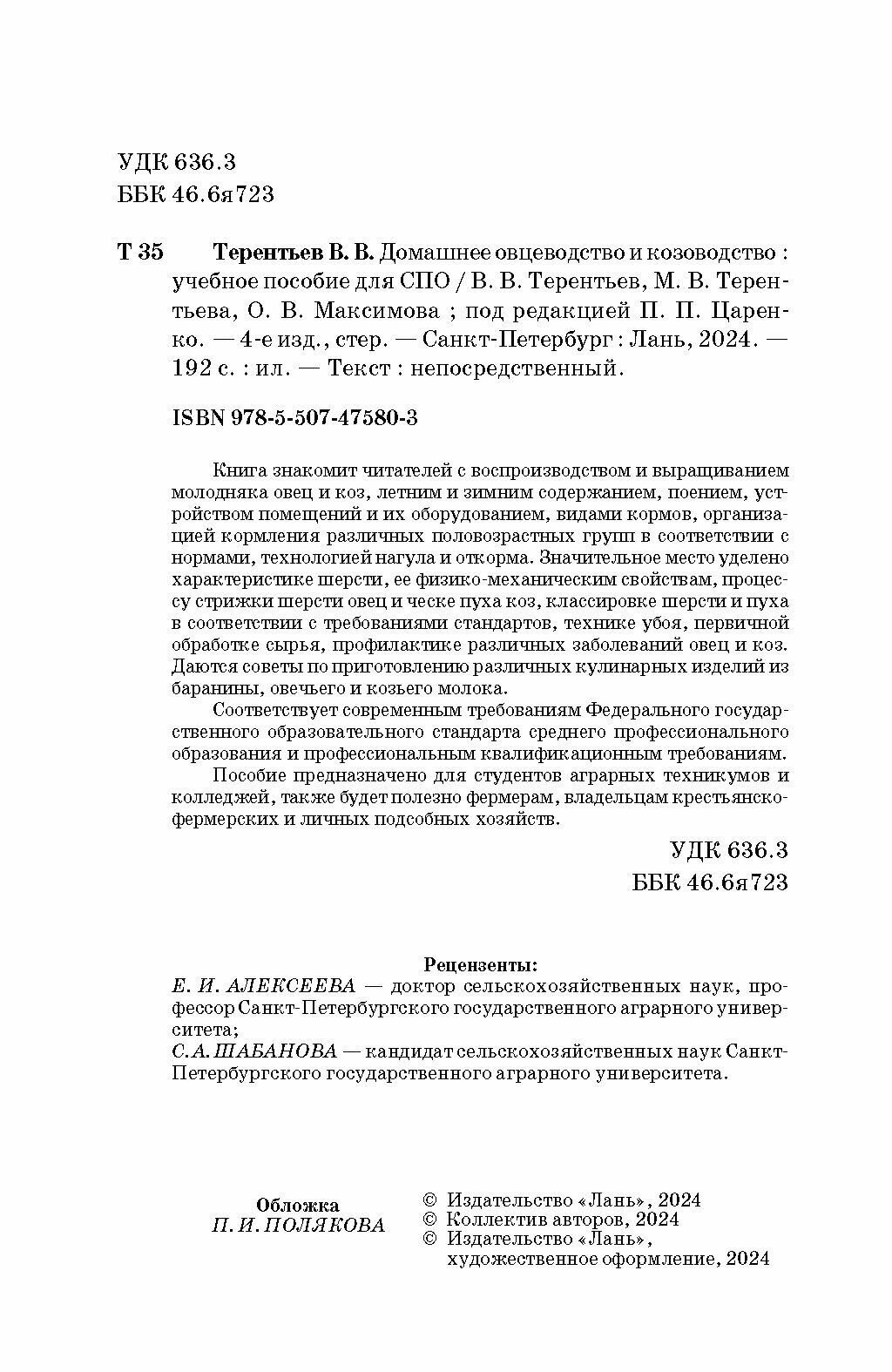 Домашнее овцеводство и козоводство. Учебное пособие (Терентьев Василий Васильевич, Терентьева Маргарита Владимировна, Максимова Ольга Васильевна); Лань, 2021