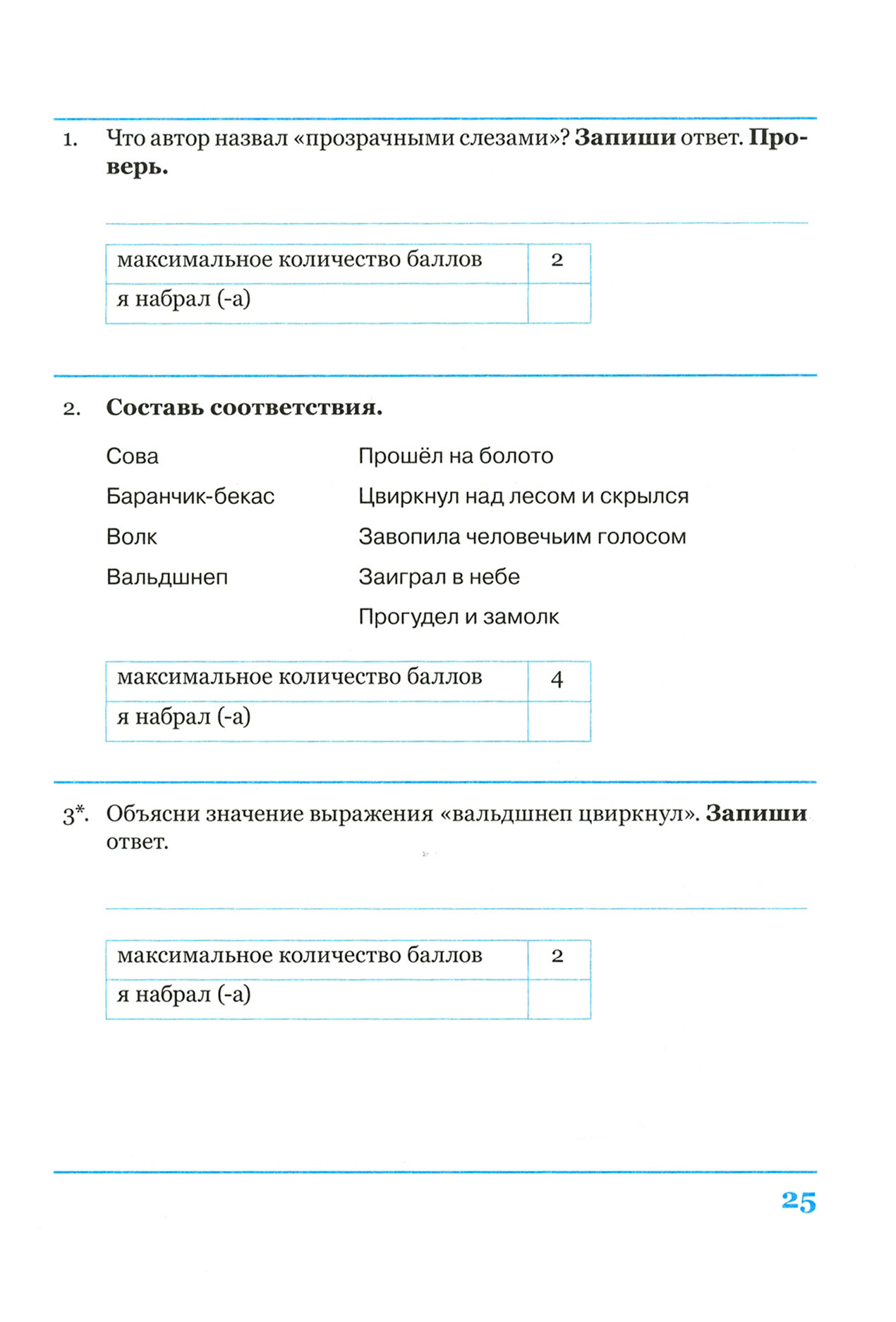 Итоговая комплексная работа - это система заданий по литературному чтению, русскому языку, окружающему миру и математике. Выполнение заданий комплексной работы предполагает использование знаний и умений, сформированных у учеников начальных классов в процессе изучения основных учебных предметов.