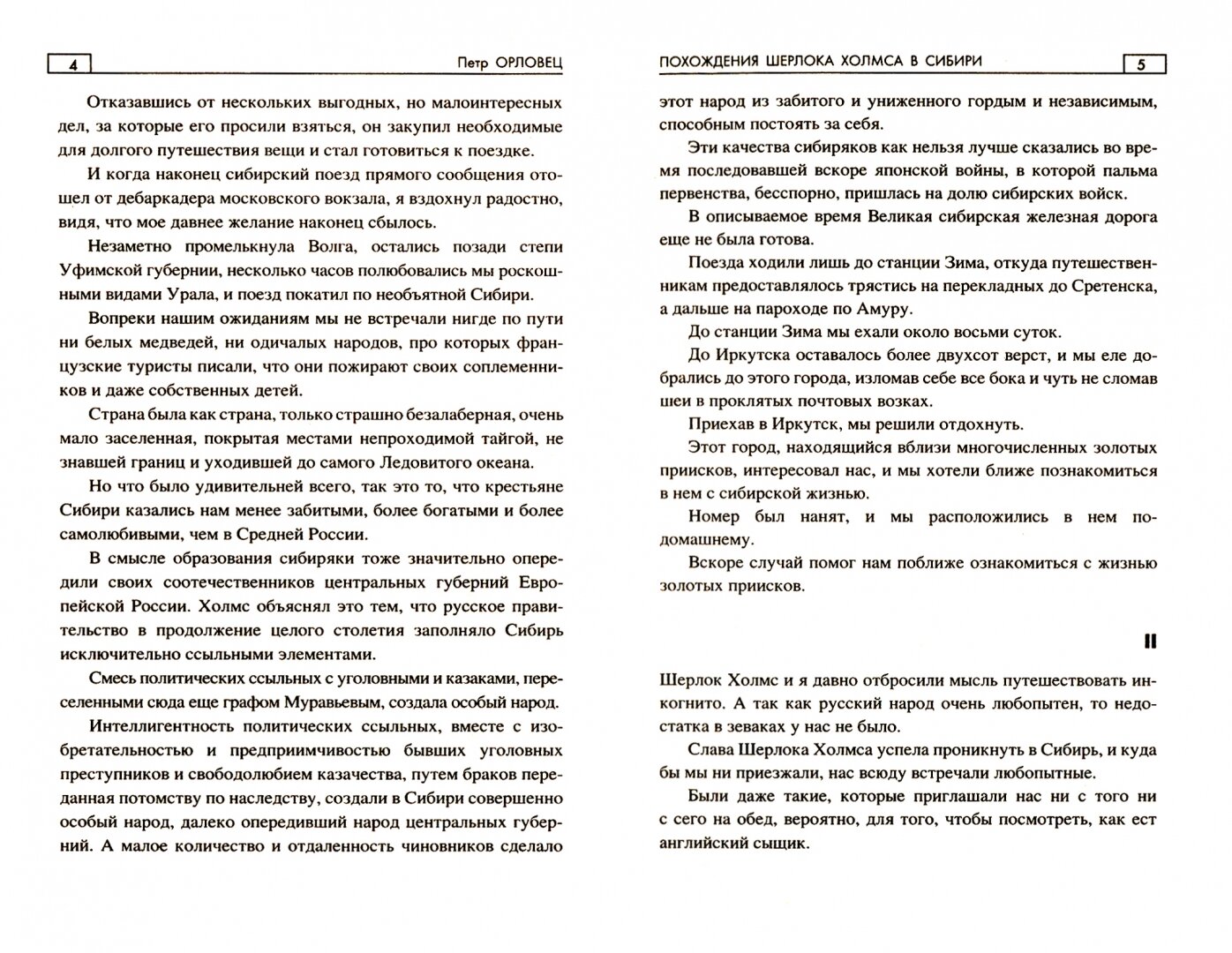 Книга включает весь цикл рассказов о приключениях Шерлока Холмса и доктора Уотсона в Сибири, написанных популярным дореволюционным автором русской "шерлокианы" П. Орловцем. Особый колорит этим рассказам придает сибирская экзотика - золотые прииски, мрачные таежные дебри, зверства беглых каторжников, пьяные загулы взяточников и казнокрадов... В издание также включен цикл рассказов "Похождение Шерлока Холмса в России".